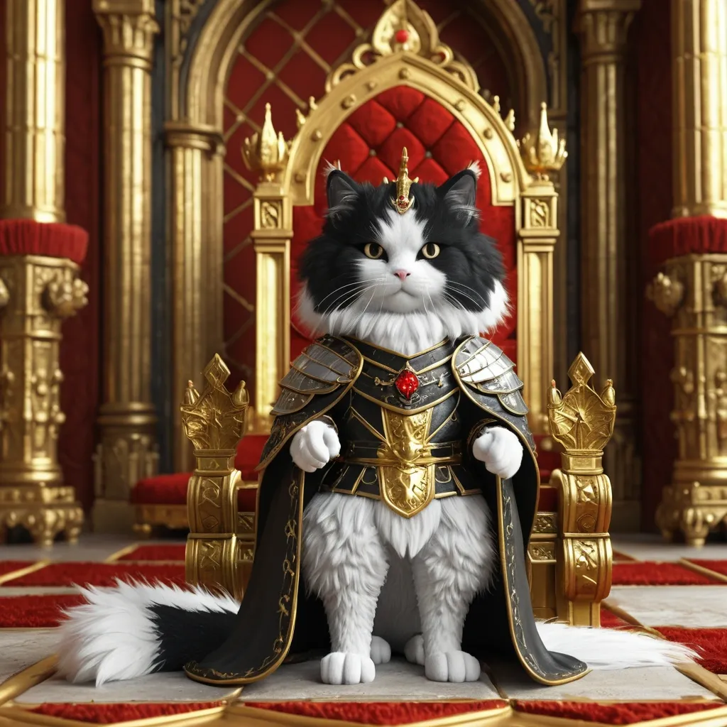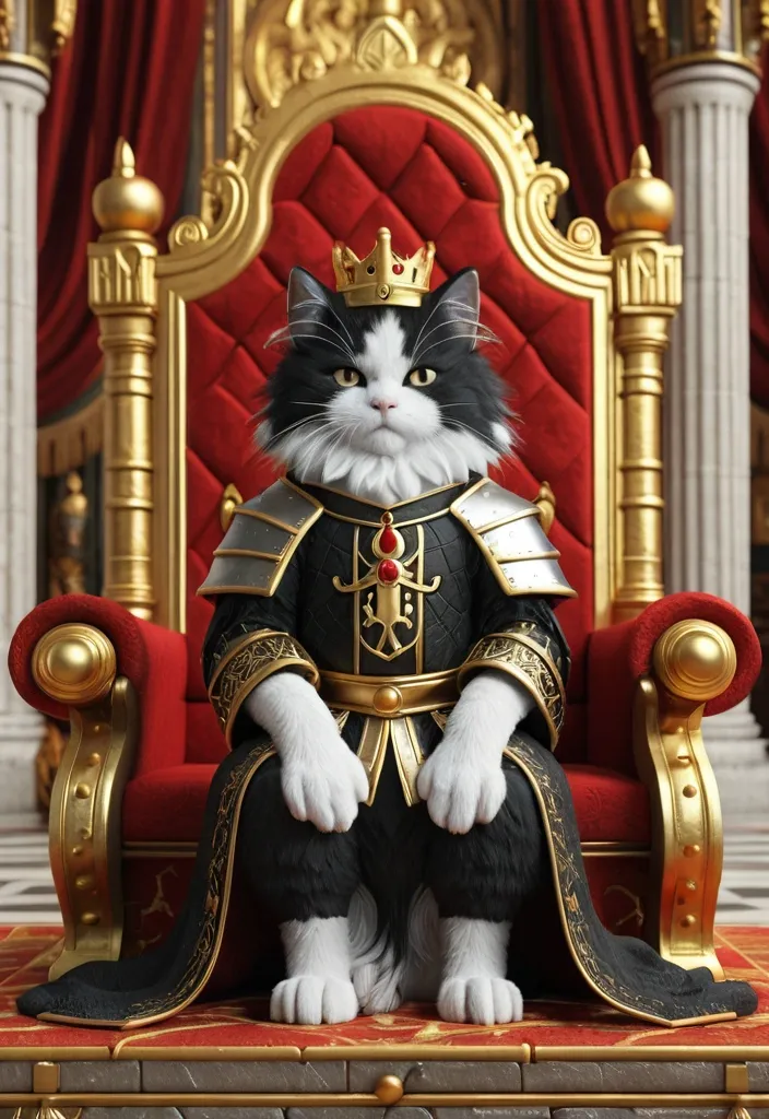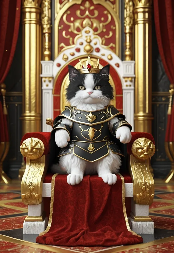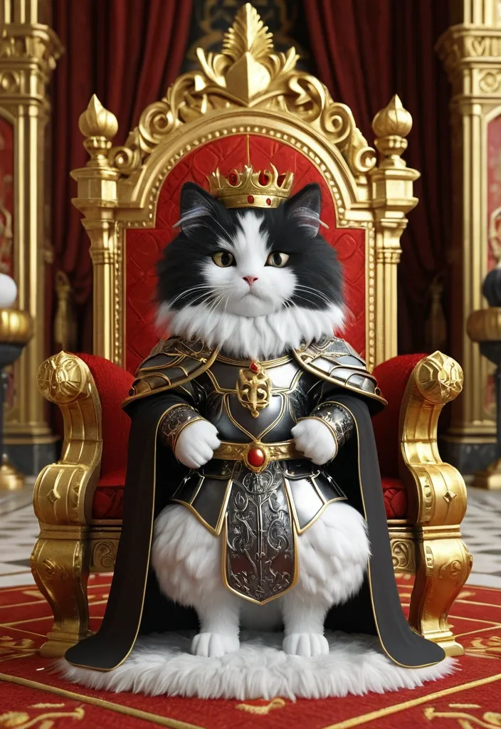 create me a volumetric 3D image of a cosmonaut in a spacesuit sitting on a throne with a red outline and a gold embossing. the cosmonaut on the chest should be depicted with gold elements , but a little. I have attached an example of the image above. make the image high-quality and natural. add a little glare. ,