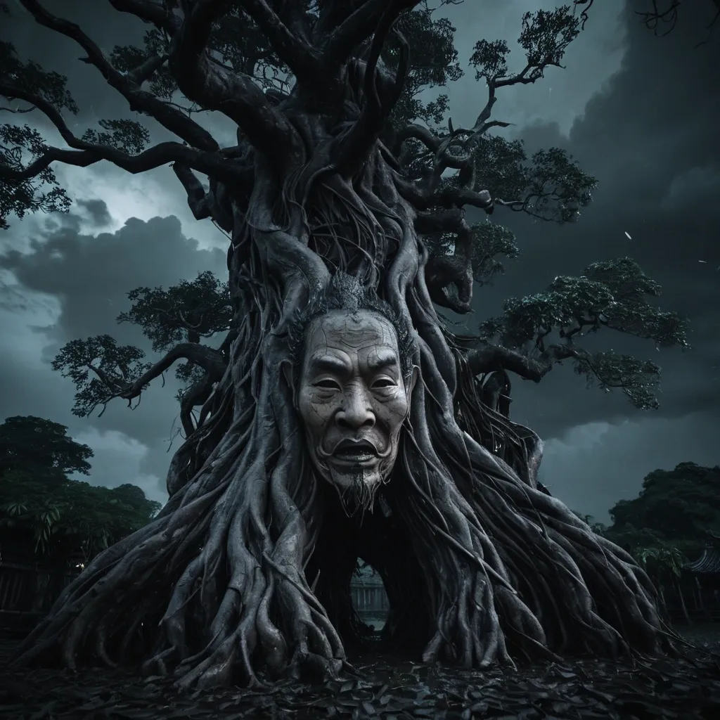 Hyperrealistic 8k photorealistic portrait of a mature woman standing on a sunlit Balinese veranda at golden hour , oval face , almond-shaped dark brown eyes , small flat rounded nose , high cheekbones , full lips , warm bronze skin , long unkempt black hair falling in loose waves over her shoulders , adult woman , confident strong posture , slight forward tilt , gaze meeting the viewer with serene intensity , three-quarter body shot from mid-thigh up , medium wide-angle lens , shallow depth of field , bokeh from distant tropical foliage. Clothing: white linen button-down tank top with wide shoulder straps , snug fit around the torso with light bust shaping , top two buttons left unfastened to reveal modest , natural cleavage while remaining fully clothed , fabric texture visible with fine weave and subtle creases , waist wrapped in an authentic batik sarong with deep indigo and maroon parang motifs tied in a traditional style , no head covering , culturally authentic Indonesian styling. Physique: curvaceous and voluptuous yet athletic , toned abs and defined obliques visible under the linen , sculpted feminine muscles , prominent collarbones , visible ribcage contours and taut abdomen suggesting regular physical discipline , healthy vibrant skin with subtle sheen , faint visible veins along forearms , confident grounded stance. Setting details: carved teak pillars , woven bamboo screens , a low incense smoke haze drifting in warm breeze , palm fronds casting delicate dappled shadows , distant volcanic silhouette and calm sea reflecting sunset , scattered frangipani blossoms on the veranda floor. Lighting: cinematic chiaroscuro with warm golden rim light from behind , soft warm key light from camera-left illuminating face and torso , cool fill from right creating gentle contrast , volumetric shafts of light and subtle rim highlights on hair and shoulder , specular highlights on linen and skin. Color palette: warm bronze and saffron , deep indigo and maroon batik accents , soft creamy whites , tropical greens , muted ocean blues , cinematic teal-orange grading. Composition and framing: vertically oriented medium full-body composition , subject placed on right third , eyes on upper third , slight negative space to left showing veranda and seascape , low camera angle for empowering presence , subtle Dutch tilt for dynamic tension. Artistic style and techniques: ultra-detailed hyperrealism with painterly filmic mood , textures emphasized—skin pores , fine hair strands , linen weave , batik thread details—soft cinematic grain , inspired by high-end fashion photography and contemporary portrait painters , delicate Art Nouveau line influences in the drape of fabric , rendered with Octane Render and photoreal shaders , volumetric lighting , gentle filmic bloom , ethereal serene atmosphere , glowing iridescent highlights on jewelry and wet wood , ultra-detailed finishing , post-processed color grading for depth and warmth. ,