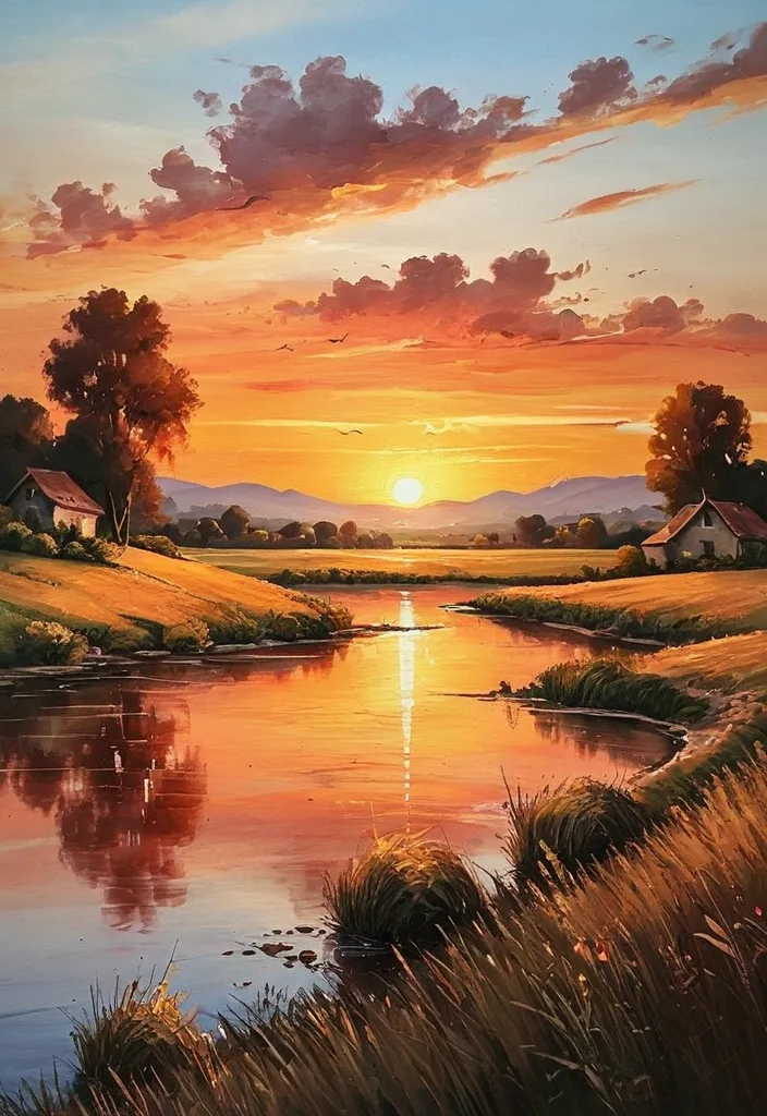 A rugged cowboy stands tall against a vast , sunlit prairie , his weathered hat casting a shadow over his sunburned face. Dressed in a classic plaid shirt , leather chaps , and sturdy boots , he exudes an air of rugged masculinity. A lasso hangs at his side , ready for action , while his loyal horse grazes nearby. The background features rolling hills and a vibrant sunset , painting the sky in hues of orange and purple , capturing the essence of the Wild West. ,
