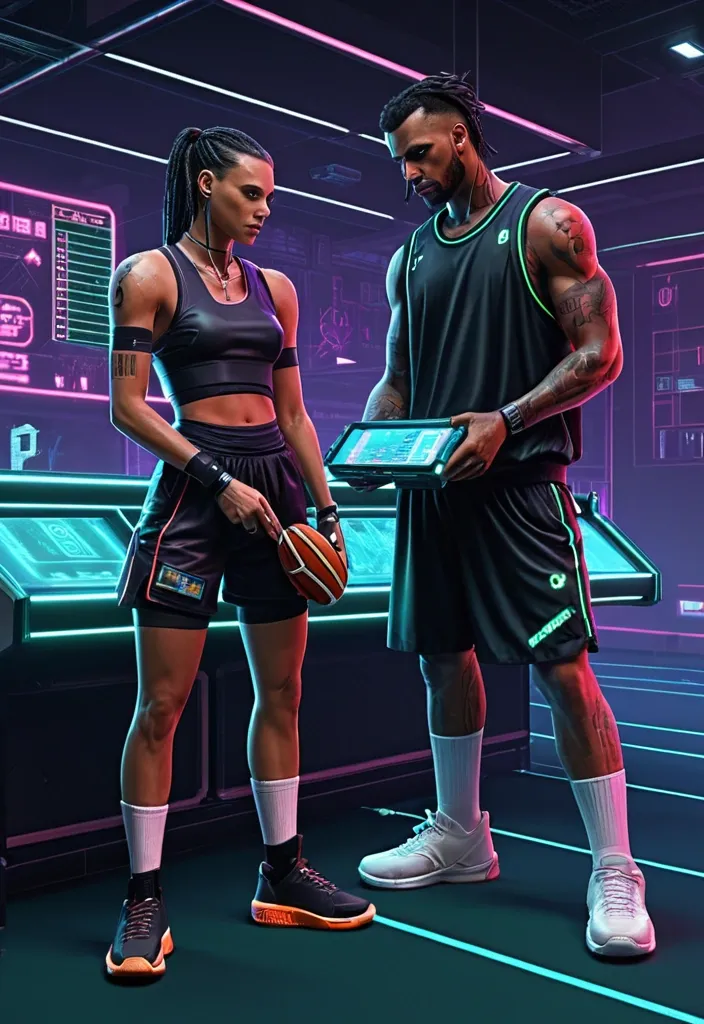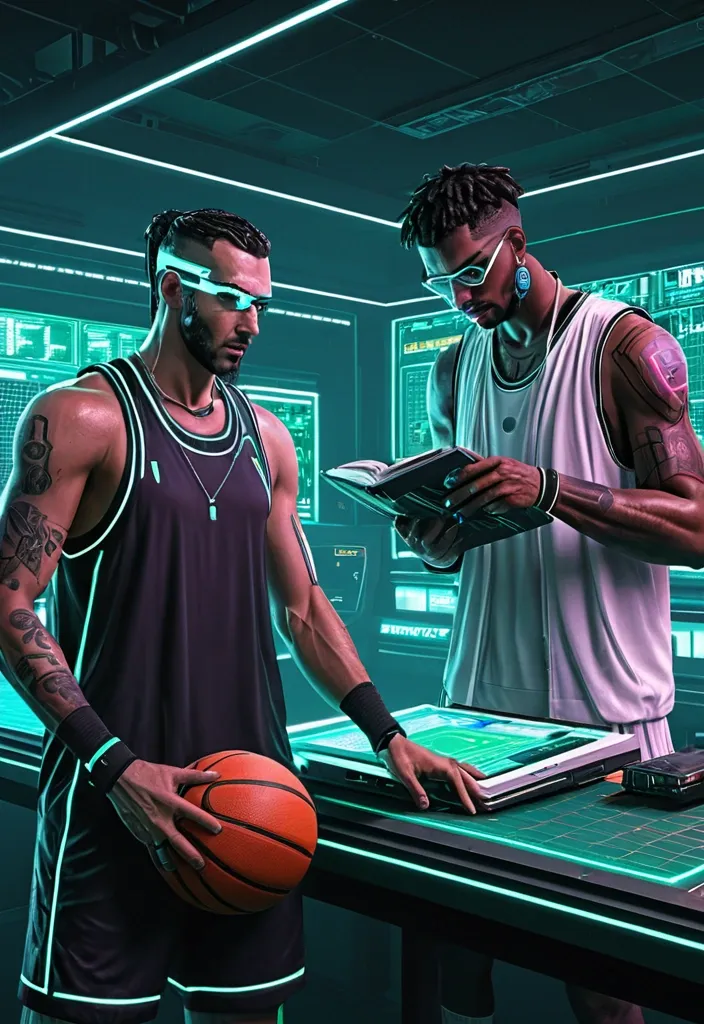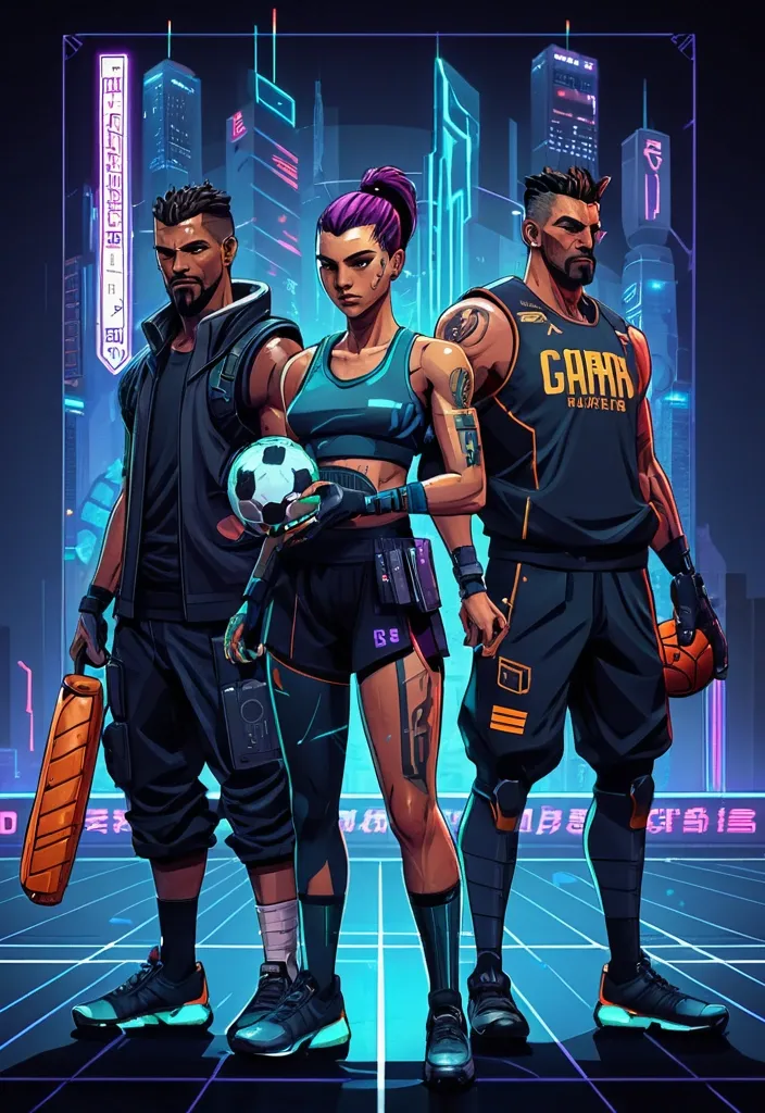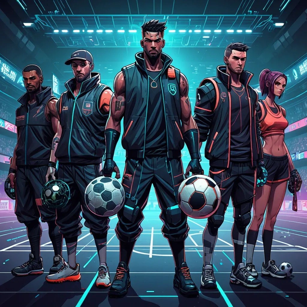 Create a high-energy , ultra-realistic advertising image in the style of Red Bull or Nike. The scene features a diverse group of Gen Z athletes , both male and female , engaged in intense training. Sports represented: golf , tennis , basketball , football (soccer) , and running. The athletes are captured in motion — swinging , sprinting , jumping , or kicking — with expressions of passion and focus. The setting is a dynamic , slightly futuristic urban sports park at golden hour , with vivid lighting , dust trails , motion blur , and slight lens flares to enhance realism. Each athlete is wearing stylish , modern athletic gear that reflects their sport , with vibrant colors and tech-inspired design details. The atmosphere conveys innovation , teamwork , and youthful energy. Include subtle graphic overlays or neon-like light accents to give a cutting-edge , passionate , and branded look , ideal for a recruitment or performance-driven platform. The image should look like a frame from a Red Bull campaign: bold , cinematic , and inspiring. ,