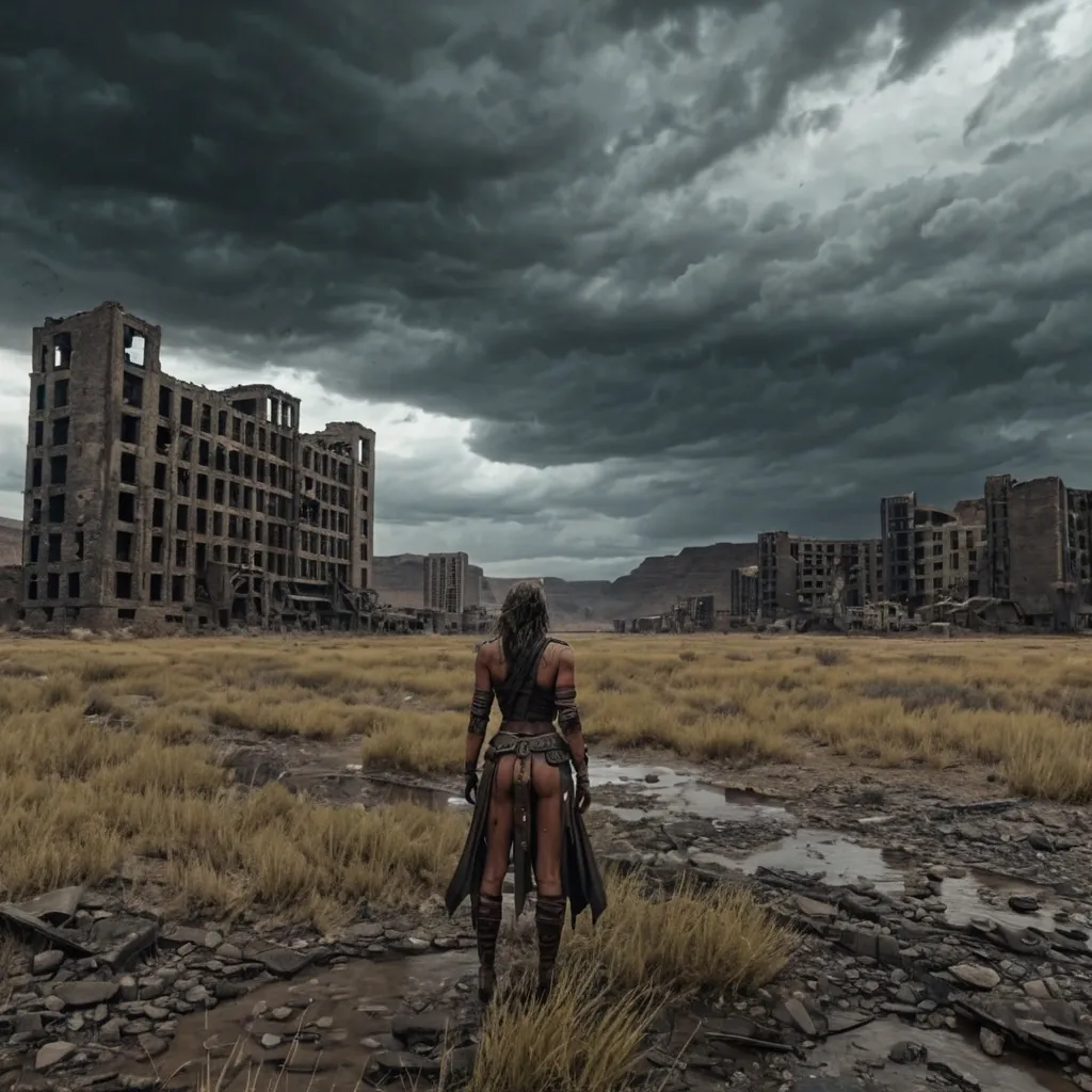 vast desert planet with harsh conditions , inspired by an austere anarchist society. Endless dusty plains and rocky landscapes under a pale sky , strong winds blowing sand across the ground. Small cooperative settlements made of simple industrial structures , metal and concrete buildings designed for functionality rather than beauty. Solar panels , wind turbines and agricultural domes scattered across the terrain. The color palette is muted and desaturated: beige , rust , grey and pale blue. The atmosphere feels quiet , isolated and contemplative. Minimal vegetation , distant mountains on the horizon , dramatic natural lighting. Cinematic science fiction concept art , highly detailed , realistic environment , wide angle landscape , atmospheric perspective. ,