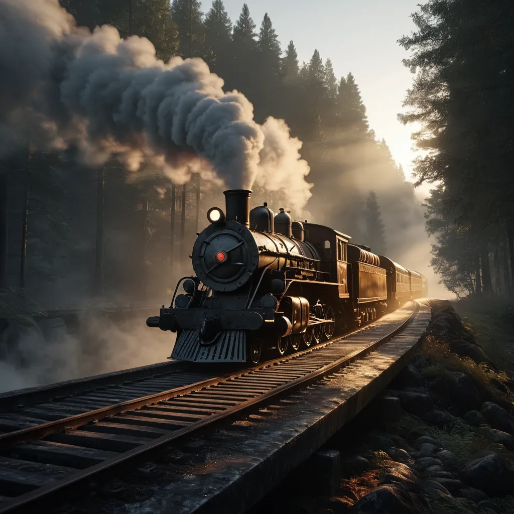 A majestic , vintage-style **steam locomotive** emerges dramatically from a swirling , **luminous magical portal** , its edges crackling with arcane energy and glowing in hues of **electric blue , violet , and gold**. The train’s **front boasts an ornate , oversized clock face** , its brass hands frozen in time , adding an air of mystery and timelessness. The locomotive itself is **richly detailed** , with polished brass accents , riveted steel plating , and billowing steam that swirls into the air as it charges forward. The **portal** is a **vortex of shimmering light** , with intricate runes and celestial patterns spinning along its edges , suggesting a gateway between dimensions. Sparks of magic dance around the train as it crosses the threshold , leaving behind a faint trail of **glowing embers**. The scene is set in a **misty , otherworldly landscape**—perhaps a forgotten railway station overgrown with vines , or a floating island suspended in a twilight sky. The background is **moody and atmospheric** , with soft gradients of **deep purples , blues , and warm golden light** , enhancing the contrast between the **mechanical grandeur of the train** and the **ethereal glow of the portal**. The **art style** blends **steampunk intricacy with fantasy surrealism**—**highly detailed linework** for the train’s mechanics , **soft , glowing gradients** for the portal’s magic , and a **cinematic composition** that draws the viewer’s eye toward the train as it bursts into this new realm. The lighting is **dramatic** , with the portal casting an **unearthly glow** on the train’s surface , while shadows stretch long and deep , adding depth and mystery. The overall mood is **epic , adventurous , and slightly mysterious** , as if the train carries secrets from another world. ,