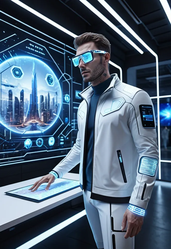 Створи фотореалістичне , ультрадеталізоване зображення школяра майбутнього (підліток 14–16 років) , який навчається в інноваційній школі 2045 року. Це сучасний учень із впевненим , розумним і зацікавленим виразом обличчя , природною поставою та зосередженим поглядом на навчальному процесі. Його одяг — футуристична розумна шкільна форма з адаптивної тканини , що тонко світиться по швах; мінімалістичний high-tech дизайн у біло-сріблясто-блакитній гамі. Піджак або куртка мають вбудовані сенсорні панелі , на рукаві — голографічний дисплей із розкладом занять , легкі кросівки з неоновими елементами та технологічною підошвою. Учень користується прозорим голографічним планшетом , який проектується в повітрі , носить розумні окуляри доповненої реальності та смарт-браслет , що відображає 3D-моделі формул або планет; поруч може бути невеликий навчальний дрон-помічник. Навчальне середовище — просторий клас майбутнього з панорамними вікнами та видом на футуристичне місто , інтерактивні стіни з проєкціями космосу , ДНК і тривимірних графіків , парти без паперових підручників , лише голографічні інтерфейси. Атмосфера світла , натхненна й технологічна , із м’яким біло-блакитним освітленням , відчуттям прогресу , безпеки та мотивації. Стиль зображення — фотореалізм , cinematic lighting , глибина різкості з легким розмиттям фону , природні тони шкіри , чиста футуристична естетика , висока деталізація текстур , 4K роздільна здатність , вертикальний формат 4:5. ,