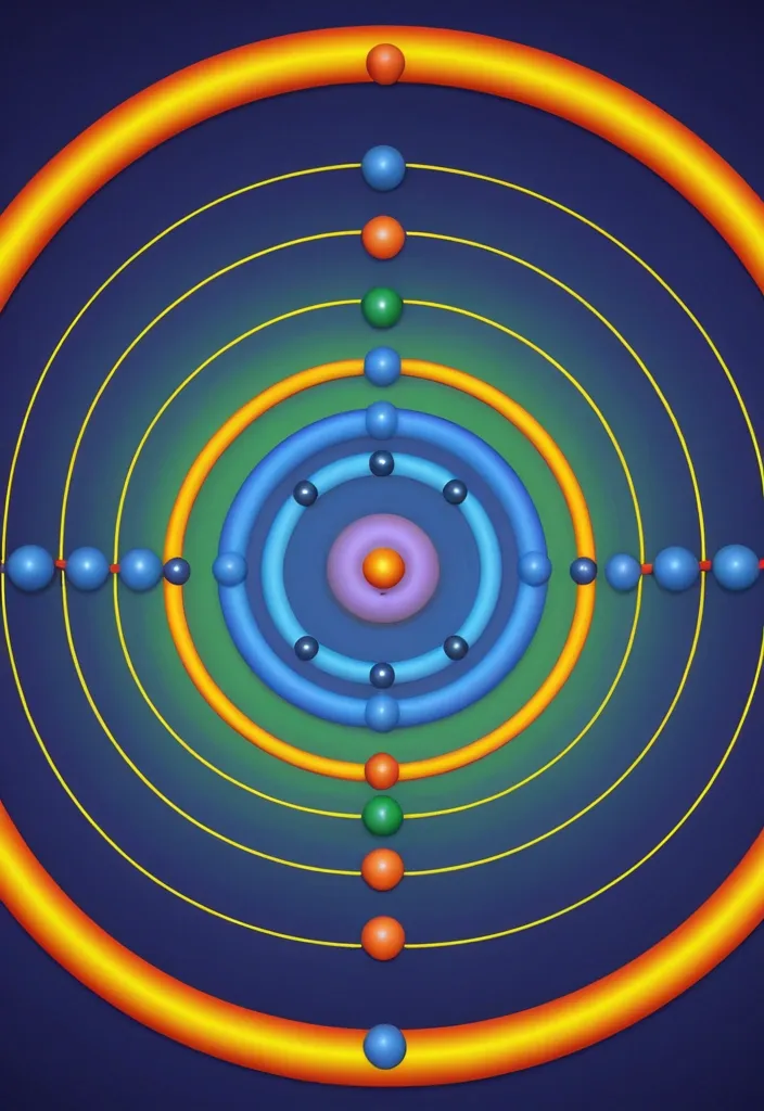 El modelo atómico de Bohr que indique los niveles de energía , el núcleo , los protones y neutrones en el núcleo y los electrones en los niveles de energía. Que tenga indicado cuales son los niveles de energía y el núcleo. Que sea sencillo. Que las partículas se puedan identificar con distintos colores. ,