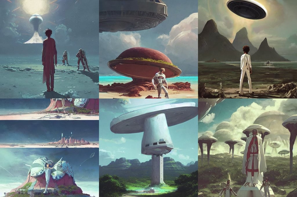 a extraterrestrial UFO landing at the kingdom of Julius Caesar , Code Geass , casual white garment , concept art by greg rutkowski and simon stalenhag and wlop , he is about 40 years old , discovered half-buried in the atoll at Bora Bora , butterfly , bearded man serenading delicious hot dogs , solid colors , obsidian turrets , 9 0's pikachu , drawn by Donato Giancola and Jon Foster , secret garden Klaus Movie Twins poster , early modern tanks , Halter-top ,