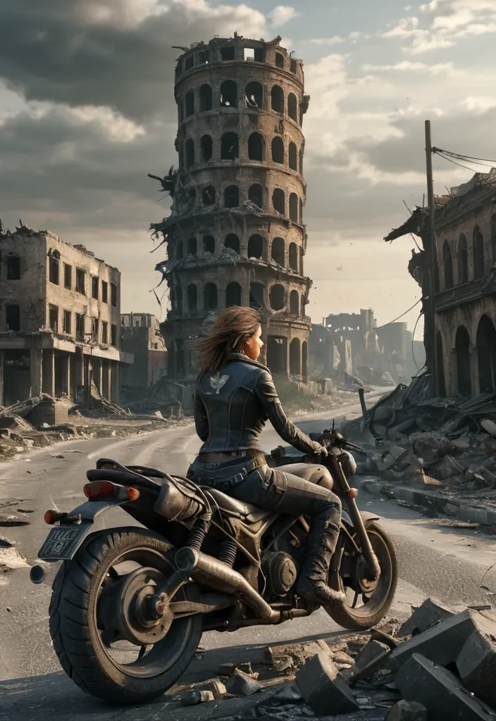 Seraphina , a celestial warrior of ambiguous origin , stands as a fusion of divine light and infernal steel. Her sun-touched skin bears faint glowing sigils along her sides like ancient runes , symbols of power rather than ornament. She wears rugged combat trousers and tactical gloves , a battle-ready figure shaped by discipline and survival. From her back , wings manifest in shifting forms—sometimes radiant arcs of light , sometimes metallic blades—suggesting a being caught between realms. Her eyes are heterochromatic , one amber and one silver , both calm and unwavering , reflecting loyalty and quiet strength. Subtle scars across her torso speak of past conflicts and endurance. Curved obsidian horns and a faint ember glow hint at a demonic lineage , balanced by an aura of celestial resolve. A long tail moves with controlled precision as she stands poised in a vast , cinematic environment. epic fantasy character design , cinematic lighting , dramatic atmosphere , high detail , realistic textures , dark fantasy , concept art , 8k , volumetric light , wide shot ,