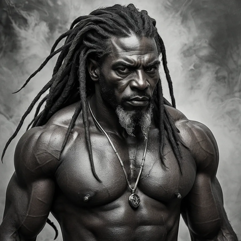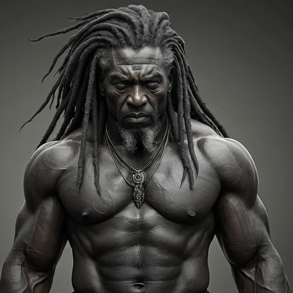 Artstation , Drawing , Graphite , Charcoal Art , "He is a man of imposing presence , his immortality etched subtly into his ageless features. His dark skin is weathered but strong , hinting at a life lived long and hard. His dreadlocks , like hers , are styled in a way that blends tradition with a modern edge. His eyes , with their striking wolf-like coloration , possess a piercing intensity that can be both captivating and unnerving. His gaze is direct and unwavering , conveying a sense of control and hidden danger. He carries himself with the posture of an alpha – shoulders squared , chest out , movements deliberate and purposeful. He is a figure of strength and quiet power , radiating an aura of both confidence and mystery. He might be dressed in a way that reflects his timeless nature – perhaps a well-tailored suit with a vintage flair , or rugged clothing that speaks to his connection with the natural world. Whatever he wears , it is clear that he is a force to be reckoned with – a protector , a provider , and a figure who commands respect without uttering a word." ,