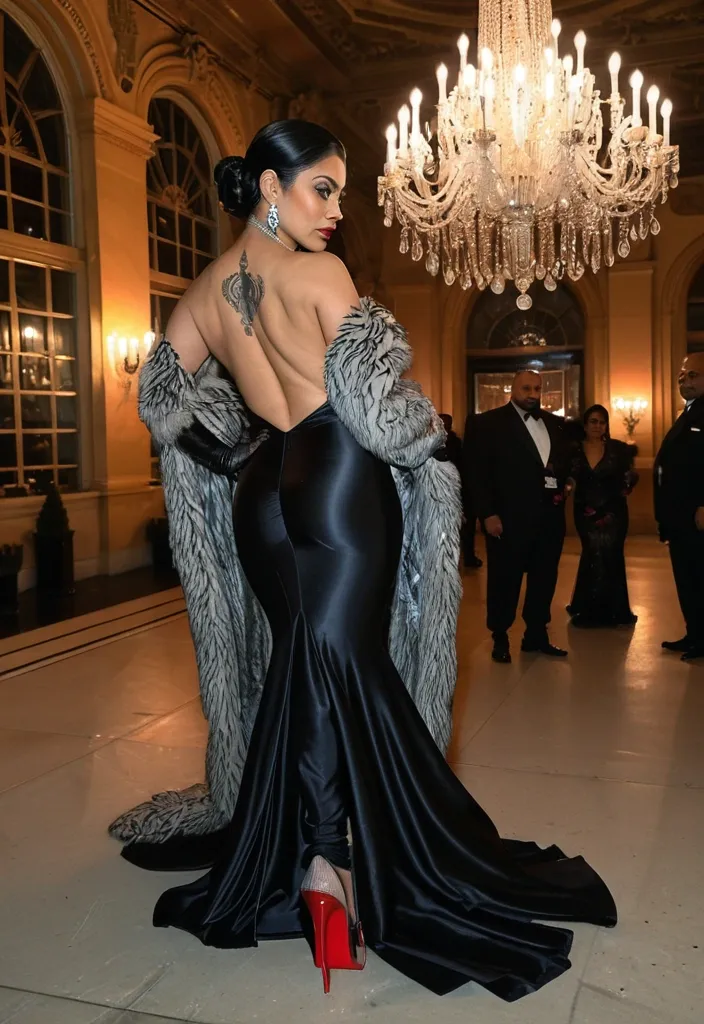 Plan de profil de Very giant curvy bbw bimbo muscular most amazing busty tallest lady with too big implants breast , enormous ass , bbw muscular enormous bimbo powerlifteuse , abnormally massive female muscular bodybuilder , bbw , Géante dame en talons , very big ass , curvacious , gorgeous , Kate Winslet face , flexing in front of tiny burglar in a narrow kitchen at evening , wearing a black widow dress , gros seins en évidence , gros biceps énormes , biggest ass , cuisses en évidence , portant des talons , make up , mini latex gloves , vue de profil ,