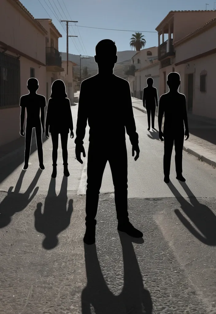 generame una imagen/fotografia sobre tomar conciencia de uso de ia sesgada como se uso en el pueblo de Almendralejo Usar siluetas , metáforas , símbolos. Evitar rostros reales o identificables (mejor figuras genéricas) El foco es: daño , manipulación , pérdida de control , violencia digital.teniendo en cuenta la retorica visual toma en cuenta la retorica visual ,