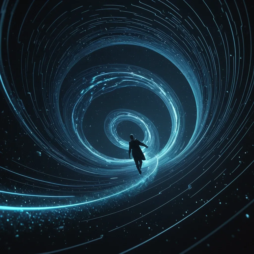 Panopticon 3D Hypnotic: space of a Miniature enchanted ocean , a lone , sleek spacecraft drifts through the void on hand , tethered to a vortex of air-waves , motion speed. Style: Celestial , ethereal , abstract , contrasting dark background Composition: dynamic diagonal composition , upward gaze Details: Sparkling black waves with smoke , streaking black light trails , sense of movement and wonder , magical atmosphere Quality: High detail , 4K , Masterpiece , Rendered in Octane. This artwork symbolizes the mystery in modern art. ,