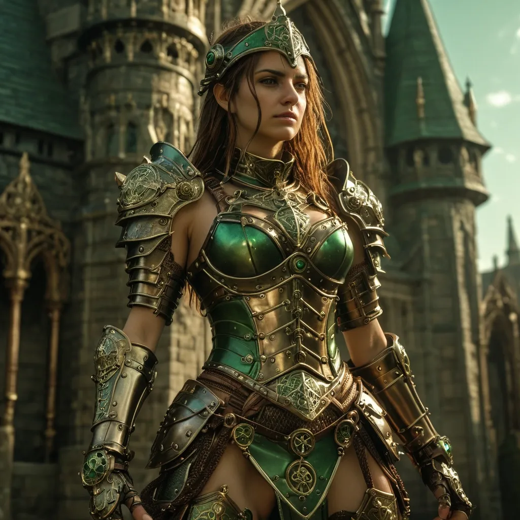 Prompt: fantasy portrait of a young girl with long flowing brown hair , radiant golden eyes , wearing a sparkling gold dress , holding a glowing flower , surrounded by golden magical particles and bokeh , ethereal soft lighting , fantasy atmosphere , ultra-realistic anime style , masterpiece , highly detailed , cinematic glow , 8K Negative Prompt: blurry , cartoonish , low detail , overexposed , deformed hands , extra limbs , watermark , text , harsh shadows ,