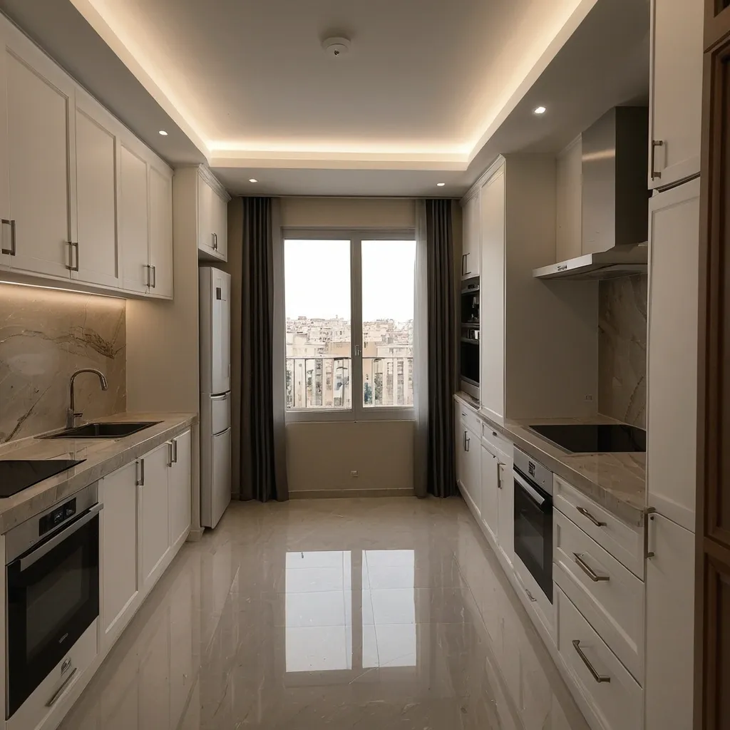 he comprado un departamento y quiero que diseñes el interior con puertas acabados de lujo y lamparas modernas y con un toque de la cultura romana las medidas son las siguientes area construida 55.73 cocina 1.63*2.60 zona de labores 1.50*1.50 balcon 2.70*0.75 espacio flexible 2.45*2.85 baño 1.15*2.10 alcoba principal 2.65*4.23 ,