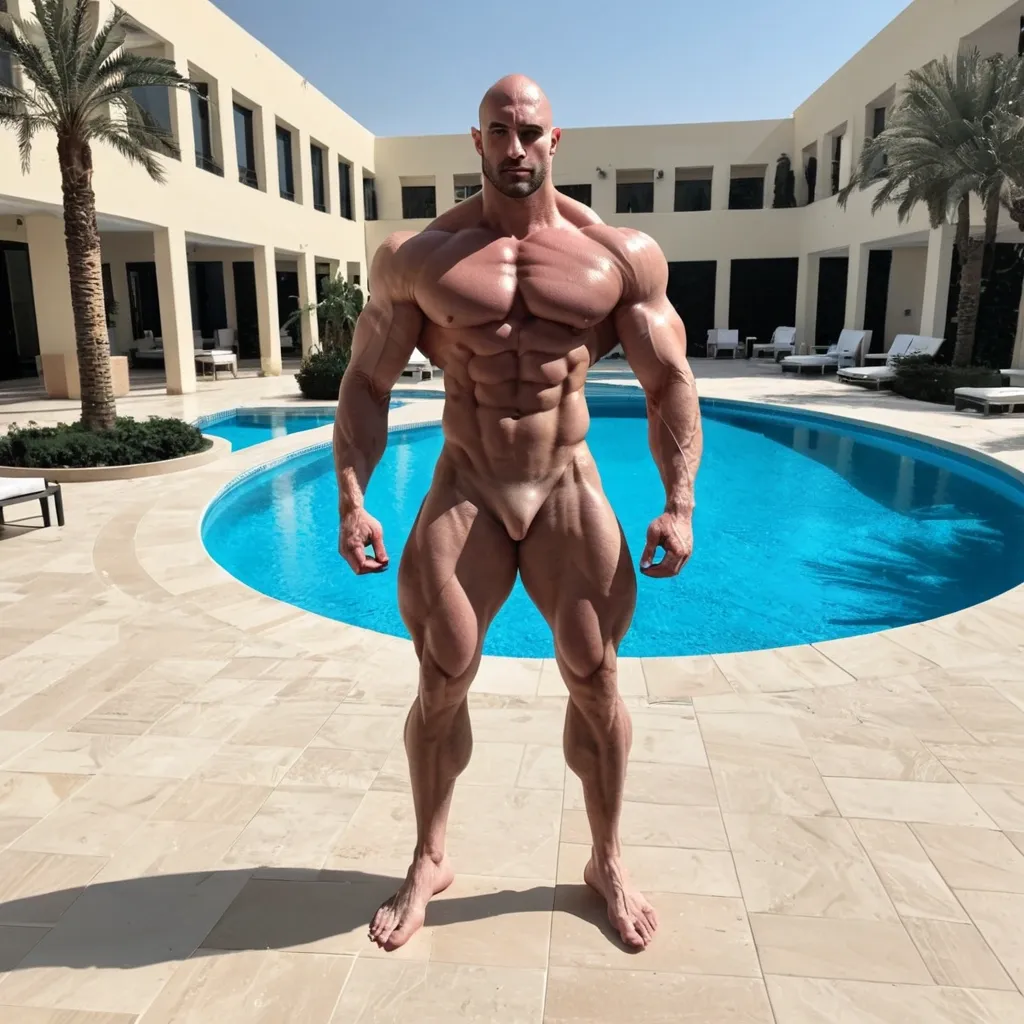 Contexto: Nível de realismo de fotos em IA- Generate a mirror photo of a very muscular , amateur ukrainian female bodybuilder in her 26s , in a relaxed front single biceps pose , after a workout , wearing a classic red competition bikini , under soft gym lighting. Realistic skin details on arms , legs , and groin — natural 4-5 day hair growth texture with short , dark hairs only in the groin , hairless legs , raw , unretouched skin , she's a little bloated , but she has a lot of muscle mass , large volumous quadriceps and small stretch marks , legs apart , good artificial lighting. Photo taken with an iPhone , photorealistic , unedited ,