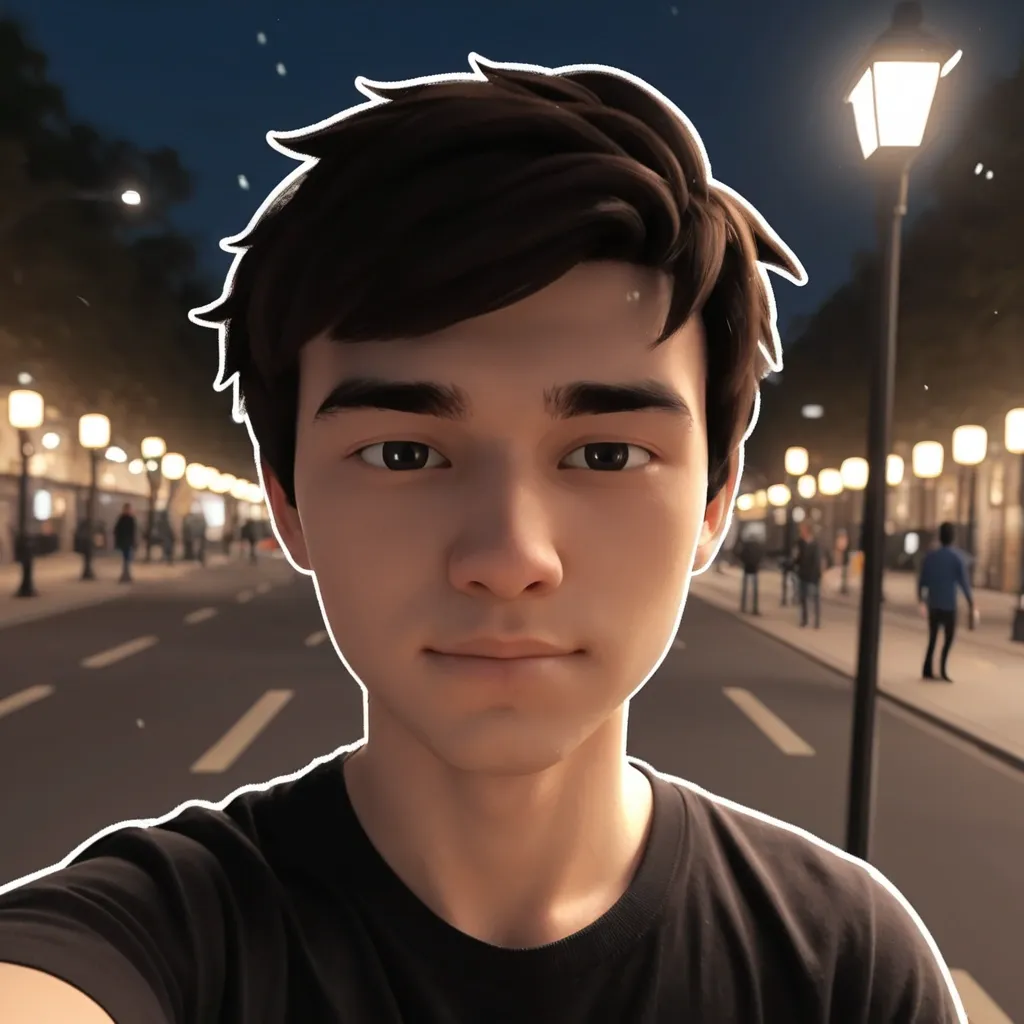 Transforma este avatar de Roblox en una persona real. Haz que parezca una selfie tomada con un iPhone , sin pose ni composicion planificada , como un momento casual e involuntario. La imagen debe estar ligeramente borrosa por movimiento , iluminada por farolas , con relación de aspecto 9:16 y que no parezca generado por IA , sino tomada por una persona real ,