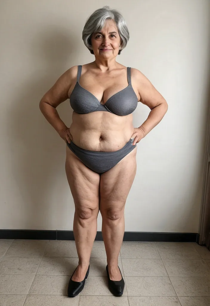 À giant muscular chubby femalebodybuilder , housewife woman BBW musclée , heavy weight bodybuildeuse géante et plantureuse with giant chest , imposante dame massive , beautiful make up Christina Hendricks face , in a garage , avec de gros seins , énormes biceps musclés , in gray satin transparent very short mini loose strapless sundress with heels , exposant les seins , bras musclés exposés , dominante , jambes massives exposées , agressive , ,