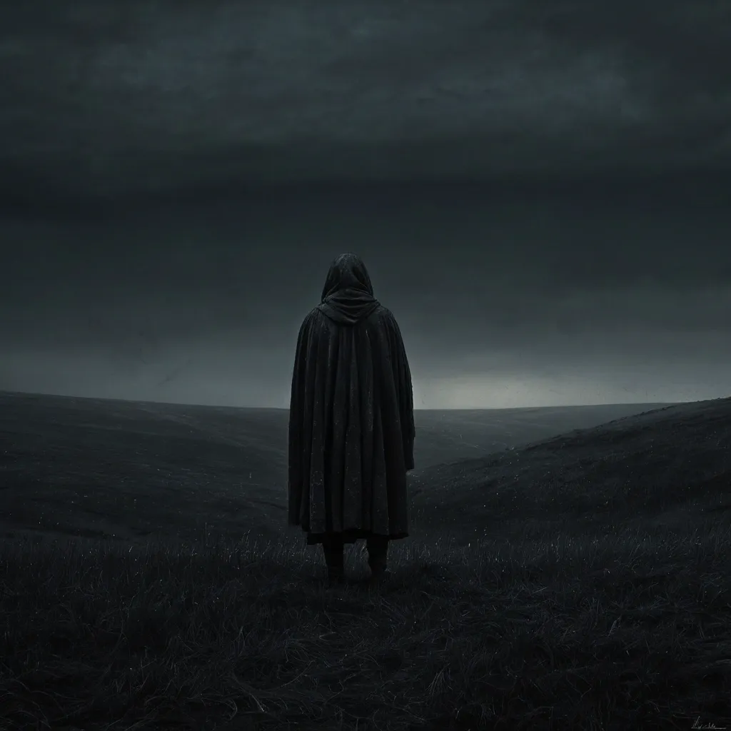 A solitary figure , cloaked in shadow , stands on a desolate , windswept hill under a turbulent twilight sky. The air crackles with an unseen energy , reflecting the deep , resonant sorrow of hardship. Faintly illuminated by a distant , ethereal glow , the inscription "Nobody knows my troubles but God" hovers subtly in the mist. The scene is rendered in a somber , expressive abstract expressionist style , with heavy , visible impasto strokes and a muted , yet emotionally charged , color palette dominated by deep blues , greys , and touches of stark white. Inspired by the raw , emotional landscapes of Anselm Kiefer and the profound spiritual weight of Mark Rothko's color fields , this image evokes a sense of universal struggle and solitary faith. The lighting is dramatic and chiaroscuro , emphasizing the isolation and inner turmoil of the subject. A scene depicting profound hardship and faith , with a lone figure overwhelmed by "troubles so hard"; the lyrics "Nobody knows my troubles , but God" are subtly woven into the background. Expressed through a gritty , emotional realism reminiscent of Dorothea Lange's documentary photography and Käthe Kollwitz's expressive etchings. The lighting is stark and dramatic , with chiaroscuro elements emphasizing the figure's solitude and the weight of their burdens , rendered in a desaturated , monochromatic palette to heighten the sense of despair and spiritual resilience. ,