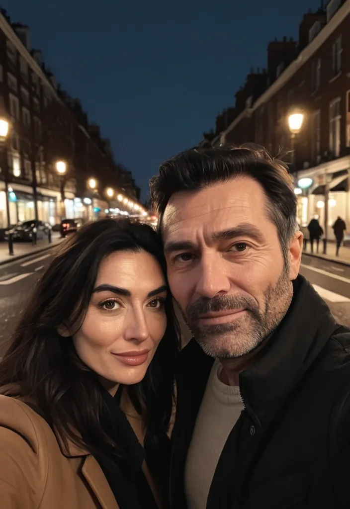 A casual selfie taken with an iPhone at night , illuminated softly by warm streetlights. The photo shows a young couple with slightly messy dark hair and their small child between them. The picture should look spontaneous and natural , not posed — like a moment caught accidentally. Slight motion blur , soft lighting , realistic skin tones , and a warm , nostalgic atmosphere. The scene should look authentic , as if taken by a real person. Aspect ratio 9:16 , handheld camera feel , no filters or digital effects. ,