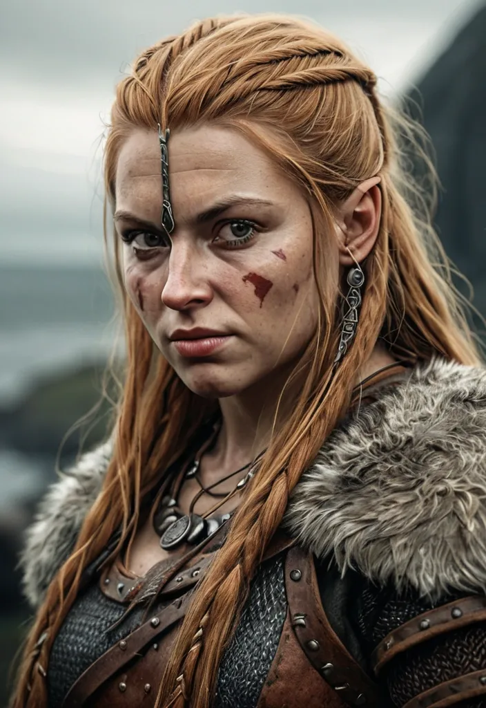 realistic viking woman , portrait ,