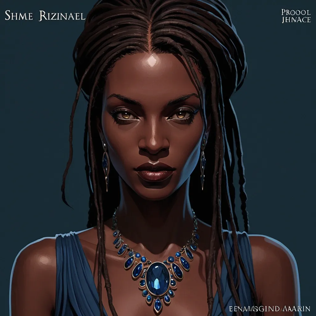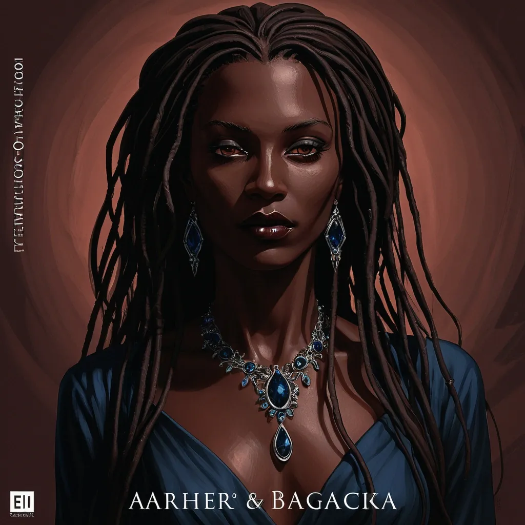Artstation , Illustration , Graphic Novel , "Esbelta , elegante e graciosa (Slender , elegant , and graceful) , she possesses a timeless beauty that belies her true age. She appears to be in her late 20s to early 30s , with dark skin , long dark dreadlocks , and striking eyes that hold a captivating allure. Her eyes have a subtle reddish hue , a telltale sign of her vampiric nature , adding to her mystique. She carries herself with a quiet confidence and an air of sophistication , reflecting her long life and vast experiences. Her movements are fluid and graceful , like a dancer , and her presence commands attention without demanding it." , "Illustration: Album cover art featuring a close-up portrait of a blues singer. Her face is partially obscured by shadows , but her striking eyes with their subtle reddish hue are clearly visible. She is wearing a bold , modern blues outfit and statement jewelry. The album title is subtly incorporated into the design. The overall style is intimate and soulful , with a focus on texture and emotion. The color palette is muted and earthy , with browns , blacks , and creams dominating." ,
