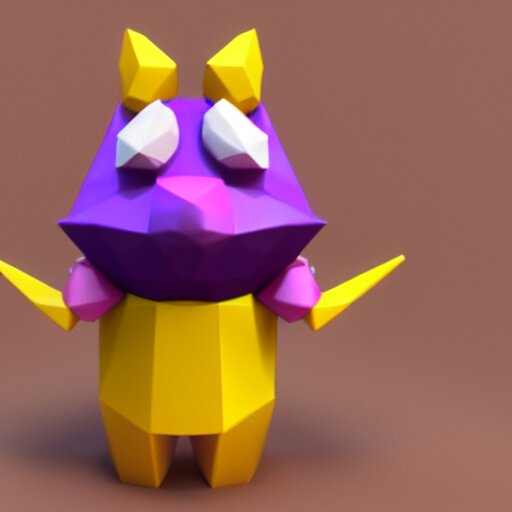 a small purple animal with a yellow box on its head , a low poly render by miyamoto , polycount , rayonism , low poly , polycount , rendered in maya ,