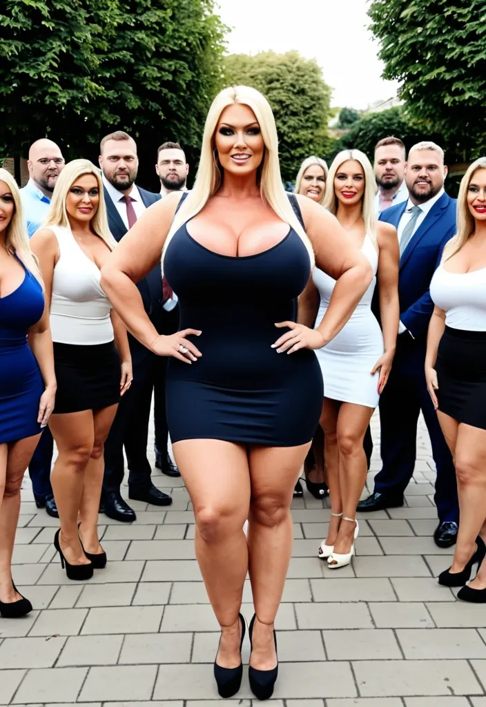 À giant muscular chubby most busty femalebodybuilder , housewife woman BBW musclée , heavy weight bodybuildeuse géante et plantureuse with giant chest , imposante dame massive , beautiful make up naomi Campbell face , in a police station office , avec de gros seins , énormes biceps musclés , in satin black marine sexiest shortest sleeveless loose sun dress with heels , exposant les seins , bras musclés exposés , dominante , jambes massives exposées , agressive , ,