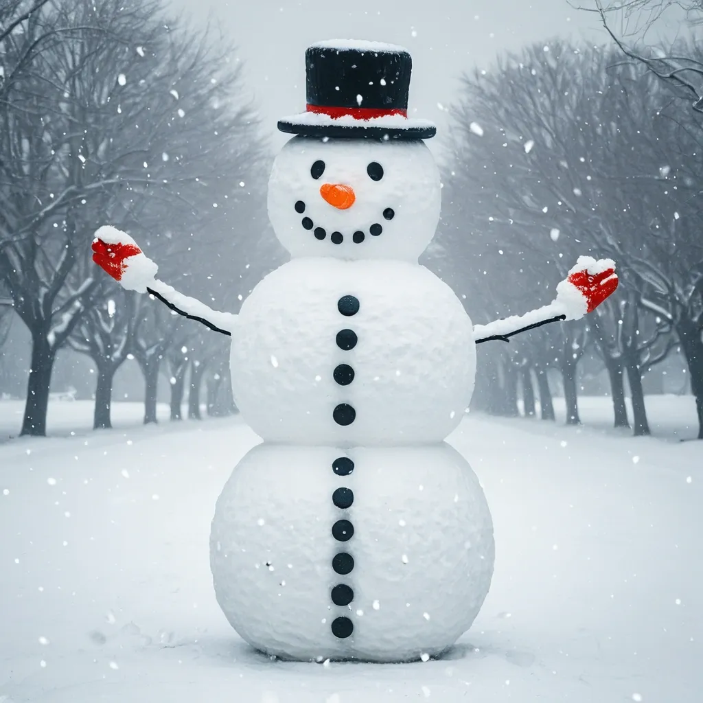 A snowman , with a red bucket on head , comics art , Cartoon ,