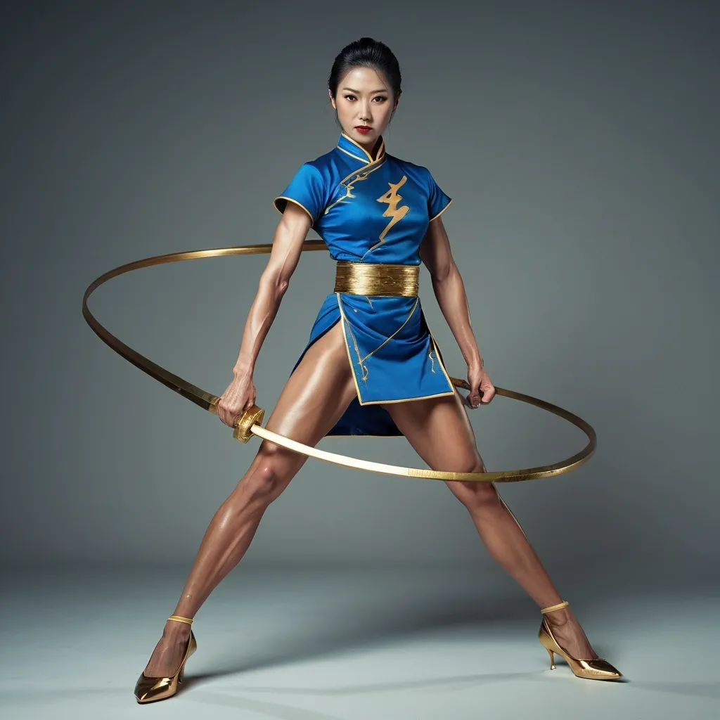 Hyperrealistic 8k photorealistic portrait of a mature woman standing on a sunlit Balinese veranda at golden hour , oval face , almond-shaped dark brown eyes , small flat rounded nose , high cheekbones , full lips , warm bronze skin , long unkempt black hair falling in loose waves over her shoulders , adult woman , confident strong posture , slight forward tilt , gaze meeting the viewer with serene intensity , three-quarter body shot from mid-thigh up , medium wide-angle lens , shallow depth of field , bokeh from distant tropical foliage. Clothing: white linen button-down tank top with wide shoulder straps , snug fit around the torso with light bust shaping , top two buttons left unfastened to reveal modest , natural cleavage while remaining fully clothed , fabric texture visible with fine weave and subtle creases , waist wrapped in an authentic batik sarong with deep indigo and maroon parang motifs tied in a traditional style , no head covering , culturally authentic Indonesian styling. Physique: curvaceous and voluptuous yet athletic , toned abs and defined obliques visible under the linen , sculpted feminine muscles , prominent collarbones , visible ribcage contours and taut abdomen suggesting regular physical discipline , healthy vibrant skin with subtle sheen , faint visible veins along forearms , confident grounded stance. Setting details: carved teak pillars , woven bamboo screens , a low incense smoke haze drifting in warm breeze , palm fronds casting delicate dappled shadows , distant volcanic silhouette and calm sea reflecting sunset , scattered frangipani blossoms on the veranda floor. Lighting: cinematic chiaroscuro with warm golden rim light from behind , soft warm key light from camera-left illuminating face and torso , cool fill from right creating gentle contrast , volumetric shafts of light and subtle rim highlights on hair and shoulder , specular highlights on linen and skin. Color palette: warm bronze and saffron , deep indigo and maroon batik accents , soft creamy whites , tropical greens , muted ocean blues , cinematic teal-orange grading. Composition and framing: vertically oriented medium full-body composition , subject placed on right third , eyes on upper third , slight negative space to left showing veranda and seascape , low camera angle for empowering presence , subtle Dutch tilt for dynamic tension. Artistic style and techniques: ultra-detailed hyperrealism with painterly filmic mood , textures emphasized—skin pores , fine hair strands , linen weave , batik thread details—soft cinematic grain , inspired by high-end fashion photography and contemporary portrait painters , delicate Art Nouveau line influences in the drape of fabric , rendered with Octane Render and photoreal shaders , volumetric lighting , gentle filmic bloom , ethereal serene atmosphere , glowing iridescent highlights on jewelry and wet wood , ultra-detailed finishing , post-processed color grading for depth and warmth. ,