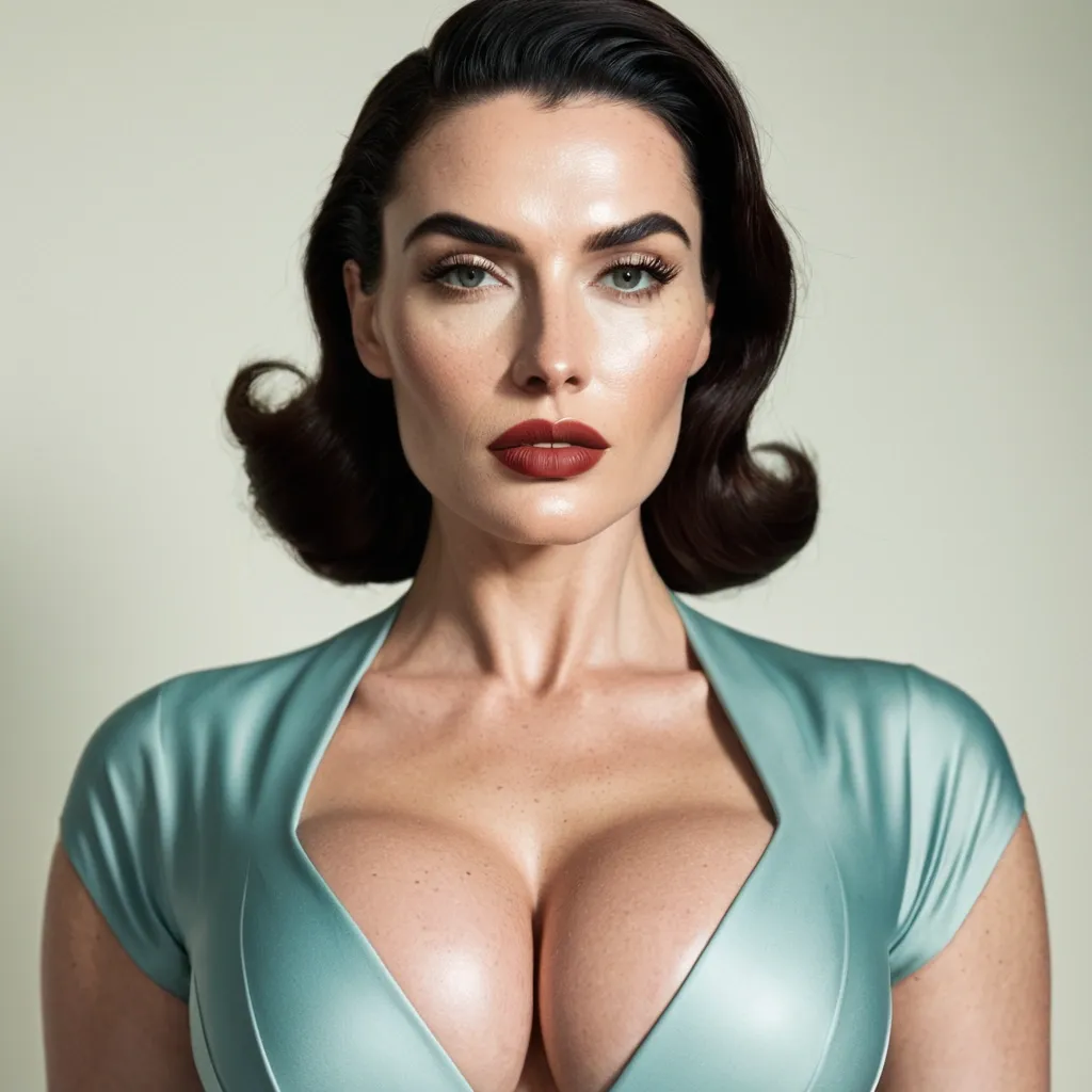 Her faceShe has a strong , symmetrical face with a defined jawline and high cheekbones.Her skin is fair with light freckles , giving her a natural , slightly vintage look.Eyes are light-colored (blue-green) , sharp and focused , with well-shaped eyebrows.Nose is straight and refined.Lips are full , with natural-toned lipstick.Overall expression is calm , confident , and serious — almost like a classic 1940s film actress.Her body•She has a curvy , hourglass figure with a narrow waist and wider hips.•Her build looks strong but feminine , not skinny — more of a fit , full , and shapely physique.•Chest is full , waist is tight , and hips/thighs are wide , giving a very balanced silhouette.•Posture is upright and confident , shoulders back , standing with control.⸻Hairstyle•Hair color is deep red / auburn.•Styled in a vintage 1940s-inspired wave , with volume on top and a smooth , sculpted curl pattern.•The hair is pulled back into a long , thick braided ponytail that rests over her shoulder.•The style looks neat , elegant , and very intentional — not casual.⸻Clothing•Top:•A fitted , button-up blouse with a floral pattern (yellow and green on light fabric).•The blouse is tight around the waist and chest , giving a classic retro silhouette.•Sleeves are short , and the collar is open slightly at the top.•Bottom:•High-waisted light blue pants , very fitted through the hips and thighs.•The high waist emphasizes her hourglass shape.•Fabric looks smooth and tailored , similar to retro or pin-up style clothing.•Accessories:•Gold drop earrings.•Light makeup with eyeliner and soft lipstick.⸻Overall vibeShe looks like a mix of:•1940s / 1950s pin-up style•modern fitness/curvy model•confident , elegant , strong woman•clean , classy , not flashyGenerate Gorgeous female boss , bimbo , hourglass body , abnormally massive female bodybuilder , gorgeous , close up , full lips , big booty , redheaded , freckles on face and breast , feminine silhouette , too big breast , big booty , sexy thighs abs , silhouette , up close , flexing biceps , beautiful green eyes , legs are iconic and defining physical feature , both visually and in terms of combat ability.wearing an outfit that is a striking blend of elegance , power , and femininity , designed to command attention in any room. The suit is tailored to perfection , hugging the wearer’s curves with precision while emphasizing a structured silhouette. The fabric itself is a refined grey tweed patterned with subtle white grid lines , giving the suit a texture that feels both sophisticated and modern. The blazer features broad blue lapels and gold button accents , adding a luxurious touch that elevates the look beyond typical business attire. The matching high-waisted trousers elongate the frame , further enhancing the poised and commanding effect of the ensemble.The styling choices amplify the boldness of the suit. The inner blouse is a silky , greybutton-down shirt that complements the tweed’s tone while introducing a softer , feminine balance to the sharp tailoring of the jacket. The blouse peeks out neatly from under the blazer , maintaining elegance without drawing focus away from the suit’s commanding cut. Accessories are kept minimal yet intentional: a delicate layered gold necklace and hoop earrings that add glimmers of light and luxury without overpowering the outfit. The choice of voluminous , frames the face with both confidence and glamour , completing the commanding visual.Altogether , this look communicates a blend of authority and allure. It is business-ready yet fashion-forward , balancing corporate structure with vibrant femininity. The color palette blue , grey and gold avoids being overly delicate , instead embracing the richness of texture , structure , and presence. This is the kind of ensemble that speaks to ambition , sophistication , and personal style—ideal for someone who thrives in positions of influence but insists on expressing her individuality with bold elegance. It’s not just clothing—it’s a statement of power wrapped in grace. In luxury living legs that could crush a watermelon , skirt high boots are a bold and striking statement piece , crafted in glossy black patent leather that gives them a sleek , polished finish. Rising to just below the knee , the boots feature three adjustable buckle straps along the shaft , adding both edge and detail to their design. The towering stiletto heel , paired with a thick platform sole , creates an ultra-dramatic silhouette that elongates the leg and exudes power and confidence. With their combination of shine , height , and structure , these boots perfectly balance fierce femininity with high-fashion allure. Massive breast , stacked , enormous butt ,