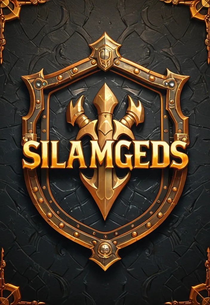 blurry , low quality , ugly , deformed , bad anatomy , extra fingers , photorealistic , hyperrealistic , anime , cartoon , modern objects , text , watermark , logo , oversaturated. bright background , colorful , modern font , plastic , shiny gold only ShieldSmithGuild in the center of the loading screen. Medieval guild logo , metal forged letters "ShieldSmithGuild" , dark steel and bronze material , hammered metal texture , ornate decorative frame around text , rivets and metal edges , high-fantasy style , dark gradient background , premium 2D illustration , centered composition , symmetrical , game title logo , no photo. 512×512 stylized realism , digital painting , high-fantasy mobile game art , dark palette with warm orange and gold accents , no text , no watermark , premium 2D illustration ,