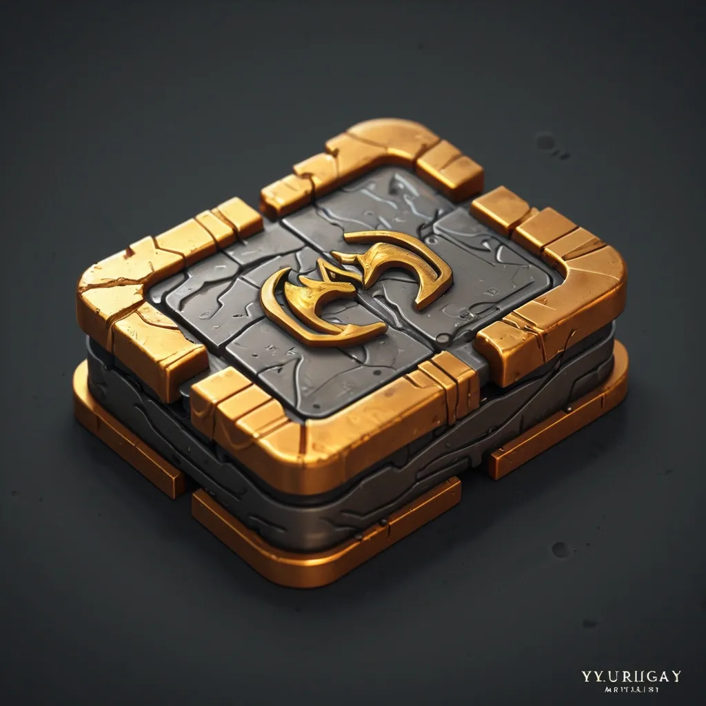 blurry , low quality , ugly , deformed , bad anatomy , extra fingers , photorealistic , hyperrealistic , anime , cartoon , modern objects , text , watermark , logo , oversaturated Store: Coin or treasure chest icon , game UI , simple , fantasy , 64x64 stylized realism , digital painting , high-fantasy mobile game art , dark palette with warm orange and gold accents , no text , no watermark , premium 2D illustration ,