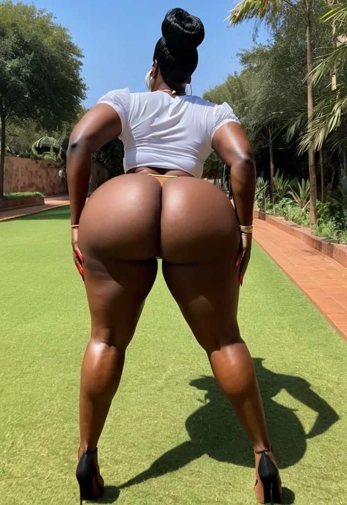 Anime , beach , rear view , blackskin , cute girl , black curly hair , blue bra , blue panties , cartoon , hand under big butt , , Cartoon ,