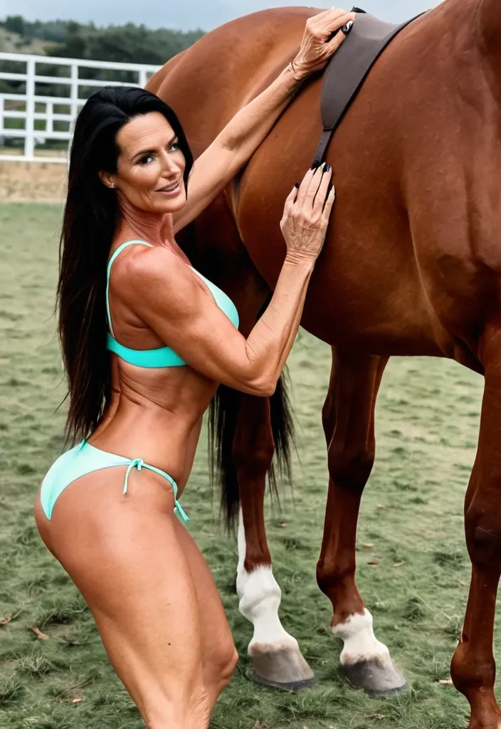 Ultra-high-definition photorealistic 34-year-old , very beautiful girl , with long , wavy and curly hair , wearing a blue lace dress and smiling confidently at the camera. Her skin is radiant and natural with a warm , approachable expression , smart make-up and a golden heavy necklace. (fine shiny patterned chiffon dress:4.0) , (insanely detailed , bloom:3.0) full body , in a large Olive garden in Toscana , dressed in refined body squatting with a balanced and composed posture , a detailed fine fishnet tank shirt body clothing and a fine silk and fine floral patterned black , transparent dress , black stockings , red stilettos. The lighting is bright and even , emphasizing her features and the friendly tone of the image. ,