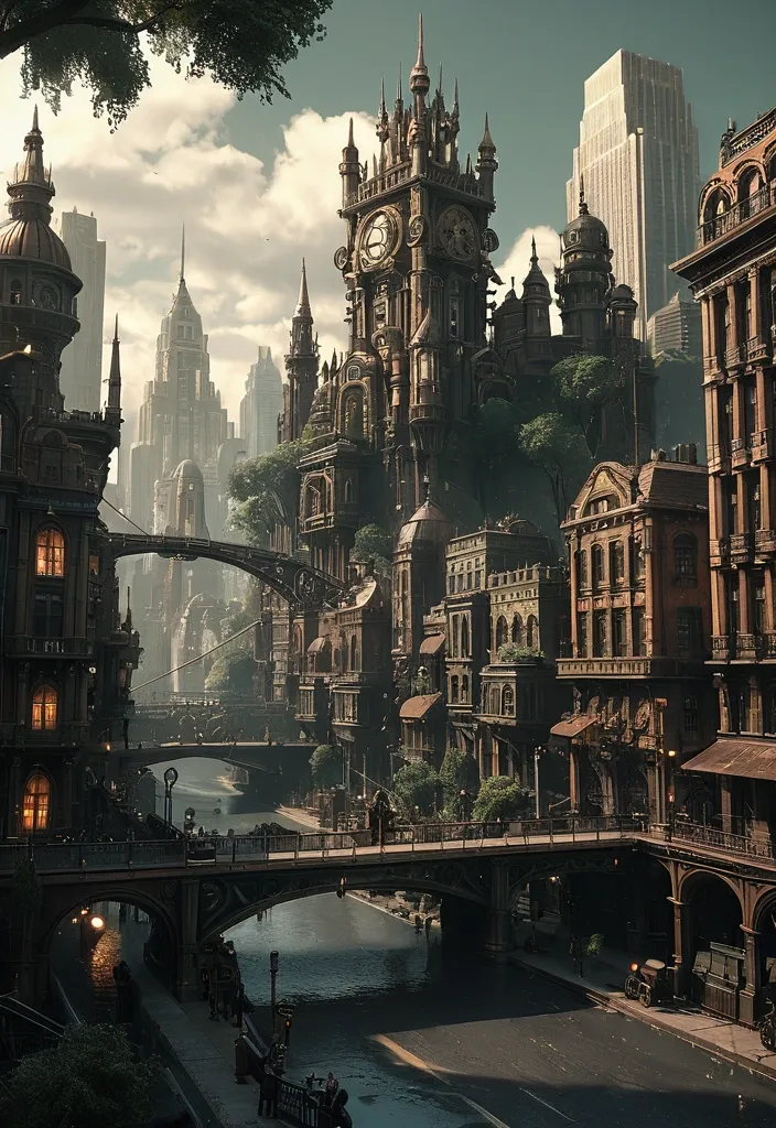 Bird's eye view , view from top , a Giant Ship shaped like a half-3D earth. A statues caryatids fit men hold a building construction , concrete brutality buildings abandoned , lost dystopi city , and bridges connecting disjointed structures that floating on middle of ocean. A winding stone staircase leads from the seaside , water , in waves to an open doorway , inviting viewers into the house. The landscape is illuminated by soft , ethereal light from a distant moon , casting a dreamy glow over the scene. The sky is rich with dark , brooding clouds , interspersed with bursts of soft pastel colors , suggesting the moments before sunset. A solitary tree leans against the structure , adding an organic touch among the surreal elements. ,