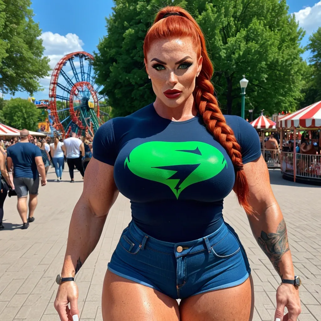 Generate Gorgeous female boss , bimbo , hourglass body , abnormally massive female bodybuilder , gorgeous , close up , full lips , big booty , redheaded , freckles on face and breast , braided design hair , feminine silhouette , too big breast , big booty , sexy thighs abs , silhouette , up close , flexing biceps , beautiful green eyes , legs are iconic and defining physical feature , both visually and in terms of combat ability.wearing an outfit that is a striking blend of elegance , power , and femininity , designed to command attention in any room. The suit is tailored to perfection , hugging the wearer’s curves with precision while emphasizing a structured silhouette. The fabric itself is a refined grey tweed patterned with subtle white grid lines , giving the suit a texture that feels both sophisticated and modern. The blazer features broad blue lapels and gold button accents , adding a luxurious touch that elevates the look beyond typical business attire. The matching high-waisted trousers elongate the frame , further enhancing the poised and commanding effect of the ensemble.The styling choices amplify the boldness of the suit. The inner blouse is a silky , greybutton-down shirt that complements the tweed’s tone while introducing a softer , feminine balance to the sharp tailoring of the jacket. The blouse peeks out neatly from under the blazer , maintaining elegance without drawing focus away from the suit’s commanding cut. Accessories are kept minimal yet intentional: a delicate layered gold necklace and hoop earrings that add glimmers of light and luxury without overpowering the outfit. The choice of voluminous , honey-brown braids cascading down her shoulders frames the face with both confidence and glamour , completing the commanding visual.Altogether , this look communicates a blend of authority and allure. It is business-ready yet fashion-forward , balancing corporate structure with vibrant femininity. The color palette blue , grey and gold avoids being overly delicate , instead embracing the richness of texture , structure , and presence. This is the kind of ensemble that speaks to ambition , sophistication , and personal style—ideal for someone who thrives in positions of influence but insists on expressing her individuality with bold elegance. It’s not just clothing—it’s a statement of power wrapped in grace. In luxury living legs that could crush a watermelon , skirt high boots are a bold and striking statement piece , crafted in glossy black patent leather that gives them a sleek , polished finish. Rising to just below the knee , the boots feature three adjustable buckle straps along the shaft , adding both edge and detail to their design. The towering stiletto heel , paired with a thick platform sole , creates an ultra-dramatic silhouette that elongates the leg and exudes power and confidence. With their combination of shine , height , and structure , these boots perfectly balance fierce femininity with high-fashion allure. Massive breast , massive cleavage , Up close shot , mean face , black satin house robe , subtle abstract gray design , gray and beige lace briser , and thong , Generate Gorgeous female boss , bimbo , dark-skinned very African-American female , hourglass body , abnormally massive female bodybuilder , gorgeous , close up , full lips , big booty , brown , on face and breast , braided styled mohawk , bald on the side , shaved on the side , feminine silhouette , too big breast , big booty , sexy thighs abs , silhouette , up close , flexing biceps , beautiful green eyes , legs are iconic and defining physical feature , both visually and in terms of combat ability.wearing an outfit that is a striking blend of elegance , power , and femininity , designed to command attention in any room. The suit is tailored to perfection , hugging the wearer’s curves with precision while emphasizing a structured silhouette. The fabric itself is a refined grey tweed patterned with subtle white grid lines , giving the suit a texture that feels both sophisticated and modern. The blazer features broad blue lapels and gold button accents , adding a luxurious touch that elevates the look beyond typical business attire. The matching high-waisted trousers elongate the frame , further enhancing the poised and commanding effect of the ensemble.The styling choices amplify the boldness of the suit. The inner blouse is a silky , greybutton-down shirt that complements the tweed’s tone while introducing a softer , feminine balance to the sharp tailoring of the jacket. The blouse peeks out neatly from under the blazer , maintaining elegance without drawing focus away from the suit’s commanding cut. Accessories are kept minimal yet intentional: a delicate layered gold necklace and hoop earrings that add glimmers of light and luxury without overpowering the outfit. The choice of voluminous , honey-brown braids cascading down her shoulders frames the face with both confidence and glamour , completing the commanding visual.Altogether , this look communicates a blend of authority and allure. It is business-ready yet fashion-forward , balancing corporate structure with vibrant femininity. The color palette blue , grey and gold avoids being overly delicate , instead embracing the richness of texture , structure , and presence. This is the kind of ensemble that speaks to ambition , sophistication , and personal style—ideal for someone who thrives in positions of influence but insists on expressing her individuality with bold elegance. It’s not just clothing—it’s a statement of power wrapped in grace. In luxury living legs that could crush a watermelon , skirt high boots are a bold and striking statement piece , crafted in glossy black patent leather that gives them a sleek , polished finish. Rising to just below the knee , the boots feature three adjustable buckle straps along the shaft , adding both edge and detail to their design. The towering stiletto heel , paired 