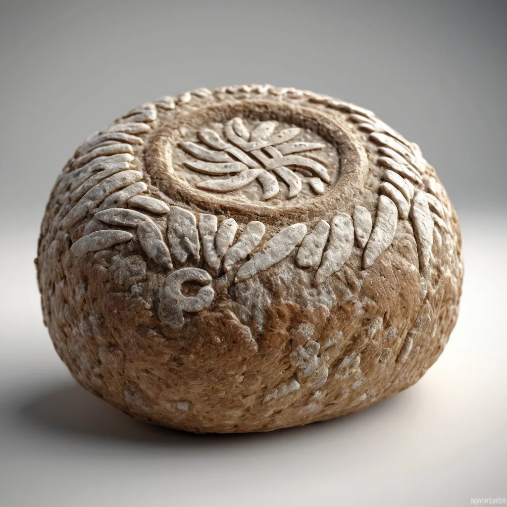 8th C Pictish Barley Bread , round coarse loaf made from ground barley , slightly cracked crust and rustic texture , Style: hyperrealistic with a painterly texture , reminiscent of historical reconstruction art , detailed and atmospheric with subtle depth of field , White or Transparent Background , Full view , Side View , 4K. ,