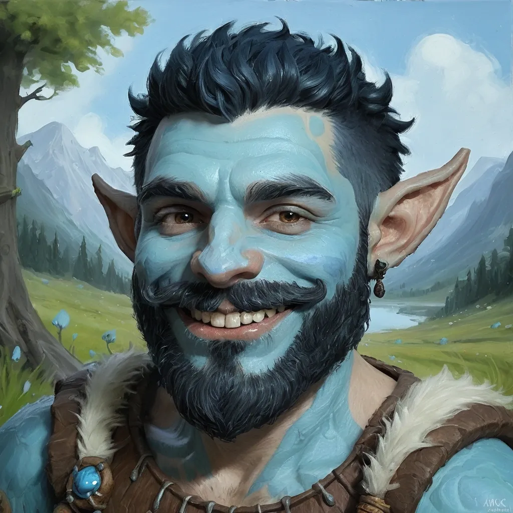 A middle-aged human king in opulent merchant robes , richly embroidered with gold and silver thread , heavy jewelry and signet rings on his fingers , a finely trimmed beard , sharp calculating eyes , and a crown that is more decorative than battle-ready. He holds a ledger and a jewel-encrusted staff , standing in a lavish trading hall filled with crates , scrolls , and exotic goods. Warm candlelight reflects off polished wood and gold surfaces , giving him an air of wealth , cunning , and authority. Realistic , detailed fantasy art ,
