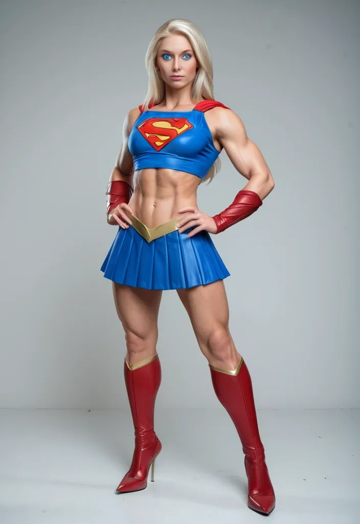 Masterpiece photorealistic full-length Freckled redhead woman , next-door neighbor , 21yo , bright green eyes , natural makeup , curly long red hair , blue sport one piece swimsuit , slim blue jeans , barefoot , leaning against the fence , suburban residential area , sunny afternoon , warm lighting , casual posture , friendly smile , garden flowers in the background , shallow depth of field. ,