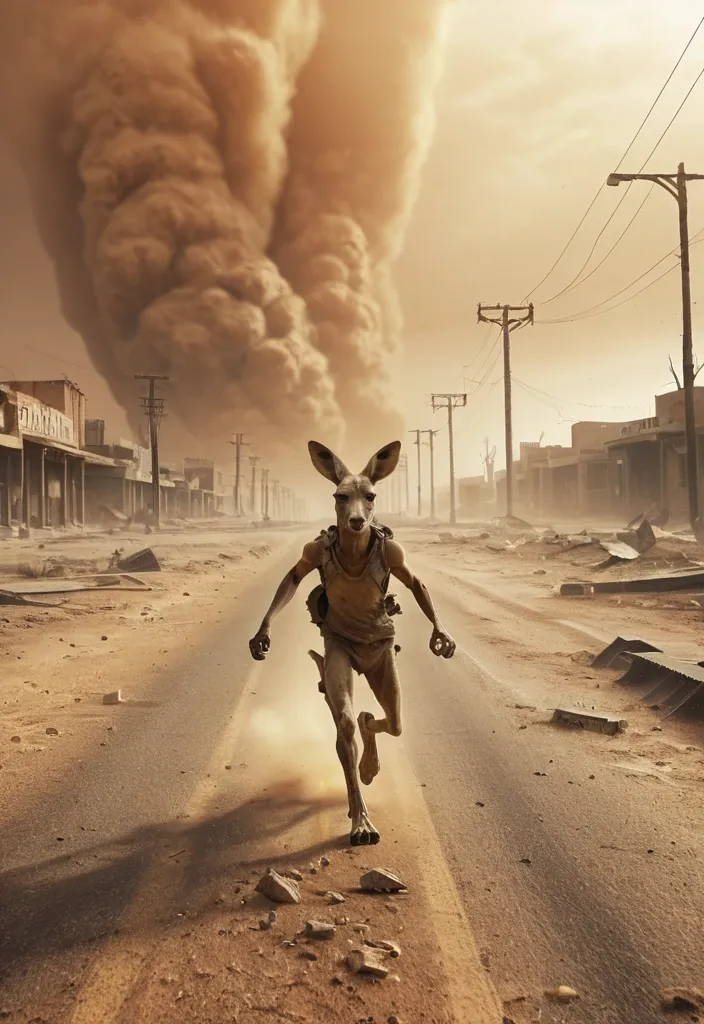 full lenght , a beautiful european pale female with wavy shoulder brown hair in her mid thirty , wearing blue opened wide zipper openside spandex suit , is standing fierly in a post apocalyptic street , she have a futuristic laser gun in right hand , backpack with survey equipment is posed next to her , a burning futuristic city in the background , it's night , cinematic style ,