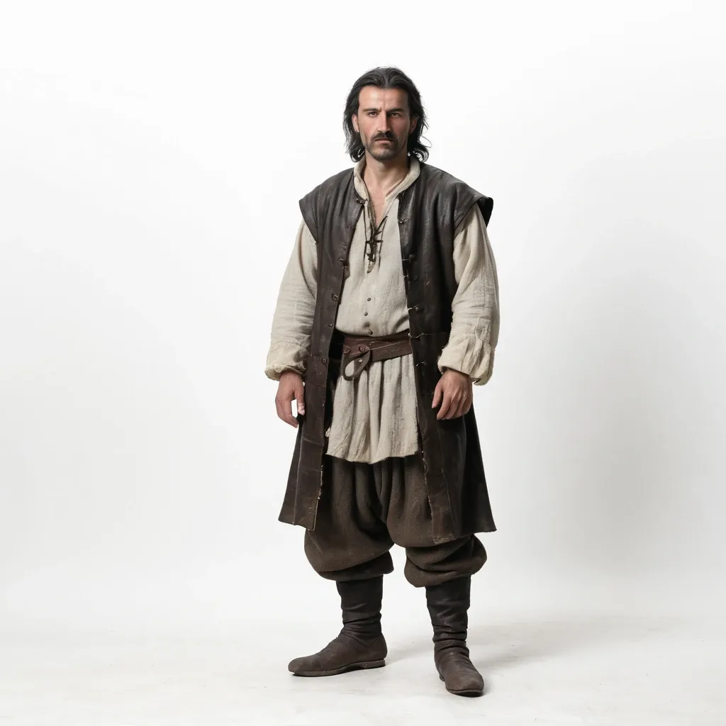 17th century Serbian village of Medveđa , small wooden and stone houses with thatched and shingled roofs , smoke rising from chimneys , villagers in wool and linen garments , Orthodox church with simple cross , surrounding forested hills and farmland , dirt paths through the settlement , rustic atmosphere of hardship and resilience , dusk , overcast skies , autumn golden leaves , Matte Painting , 4K ,