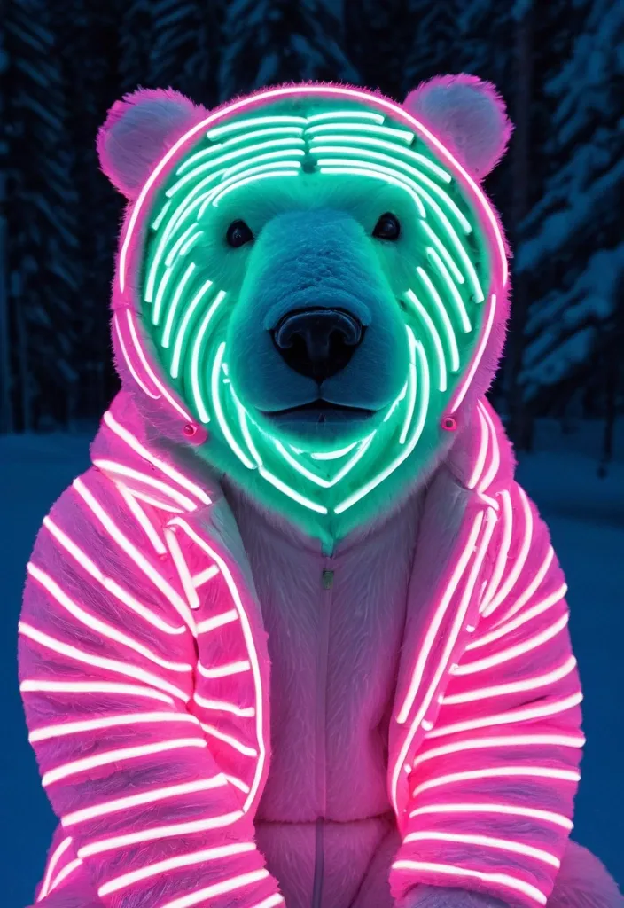 a cybernetic symbiosis of a single fluffy polar bear organic suit made of pearlescent wearing anodized thread knitted shiny ceramic multi colored yarn thread infected with kevlar , ferrofluid drips , carbon fiber , ceramic cracks , gaseous blob materials and diamond 3d fractal lace iridescent bubble 3d skin dotted covered with orb stalks of insectoid compound eye camera lenses orbs floats through the living room , film still from the movie directed by Denis Villeneuve with art direction by Salvador Dalí , wide lens , ,