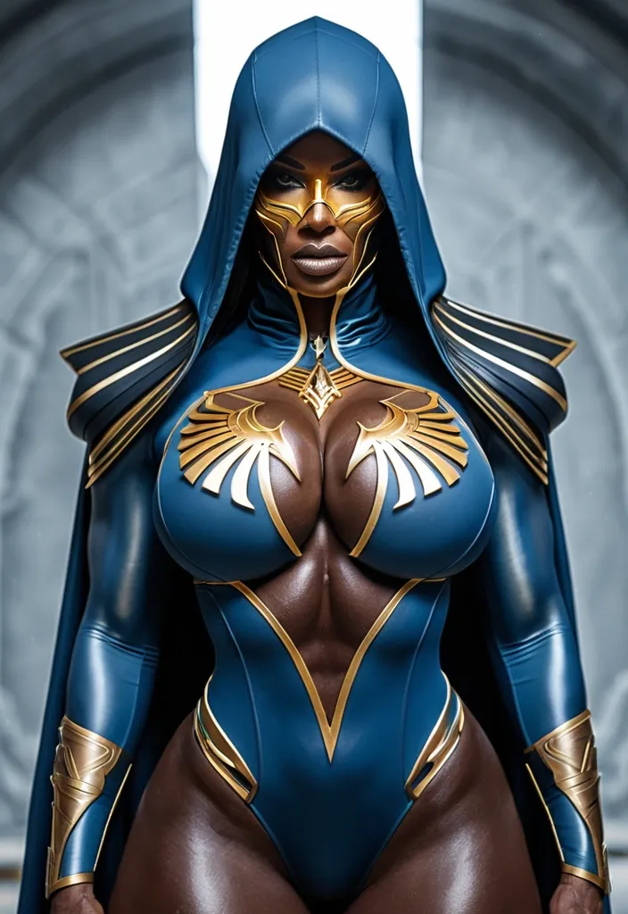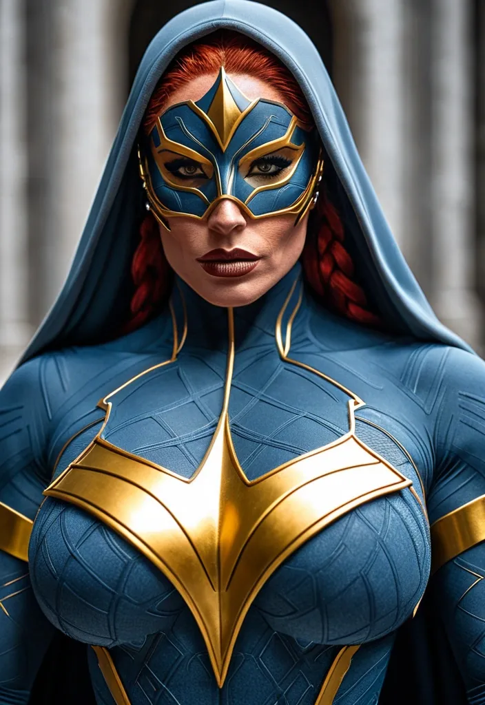 Generate Gorgeous female boss , bimbo , Japanese woman , , hourglass body , abnormally massive female bodybuilder , gorgeous , close up , full lips , big booty , red hair , bob-cut , short hair , feminine silhouette , too big breast , big booty , sexy thighs abs , silhouette , up close , flexing biceps , beautiful brown eyes , legs are iconic and defining physical feature , both visually and in terms of combat ability.wearing an outfit that is a striking blend of elegance , power , and femininity , designed to command attention in any room. The suit is tailored to perfection , hugging the wearer’s curves with precision while emphasizing a structured silhouette. The fabric itself is a refined grey tweed patterned with subtle white grid lines , giving the suit a texture that feels both sophisticated and modern. The blazer features broad blue lapels and gold button accents , adding a luxurious touch that elevates the look beyond typical business attire. The matching high-waisted trousers elongate the frame , further enhancing the poised and commanding effect of the ensemble.The styling choices amplify the boldness of the suit. The inner blouse is a silky , greybutton-down shirt that complements the tweed’s tone while introducing a softer , feminine balance to the sharp tailoring of the jacket. The blouse peeks out neatly from under the blazer , maintaining elegance without drawing focus away from the suit’s commanding cut. Accessories are kept minimal yet intentional: a delicate layered gold necklace and hoop earrings that add glimmers of light and luxury without overpowering the outfit. The choice of voluminous , honey-brown braids cascading down her shoulders frames the face with both confidence and glamour , completing the commanding visual.Altogether , this look communicates a blend of authority and allure. It is business-ready yet fashion-forward , balancing corporate structure with vibrant femininity. The color palette blue , grey and gold avoids being overly delicate , instead embracing the richness of texture , structure , and presence. This is the kind of ensemble that speaks to ambition , sophistication , and personal style—ideal for someone who thrives in positions of influence but insists on expressing her individuality with bold elegance. It’s not just clothing—it’s a statement of power wrapped in grace. In luxury living legs that could crush a watermelon , skirt high boots are a bold and striking statement piece , crafted in glossy black patent leather that gives them a sleek , polished finish. Rising to just below the knee , the boots feature three adjustable buckle straps along the shaft , adding both edge and detail to their design. The towering stiletto heel , paired with a thick platform sole , creates an ultra-dramatic silhouette that elongates the leg and exudes power and confidence. With their combination of shine , height , and structure , these boots perfectly balance fierce femininity with high-fashion allure. High cheekbones , prominent jawline , gorgeous big enormous breast , enormous butt , up close massive cleavageH She is wearing a form-fitting gray blazer with black lapels over a low-cut white top , paired with a matching tight copper colored pencil skirt , sheer black stockings , and accessorized a necklace police badge , and earrings. ,