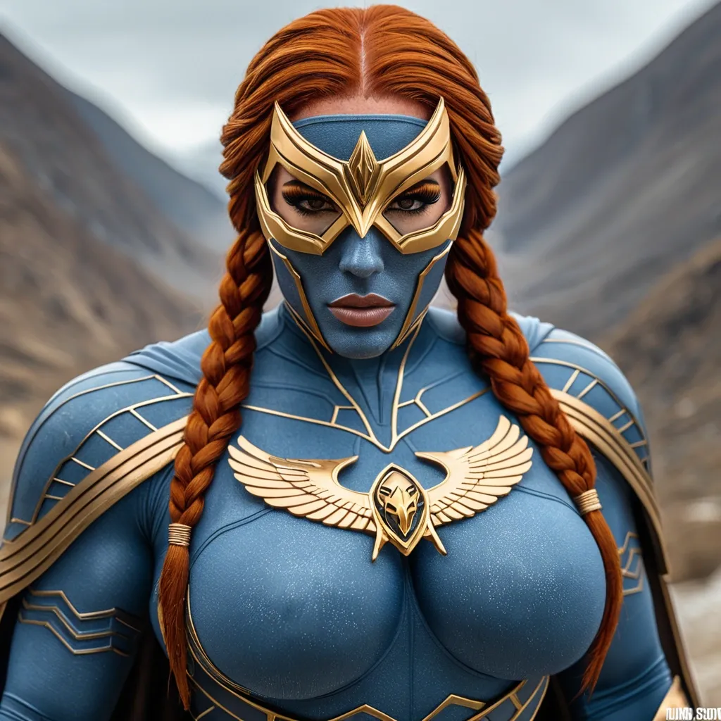 Generate Gorgeous female boss , bimbo , Japanese woman , , hourglass body , abnormally massive female bodybuilder , gorgeous , close up , full lips , big booty , red hair , bob-cut , short hair , feminine silhouette , too big breast , big booty , sexy thighs abs , silhouette , up close , flexing biceps , beautiful brown eyes , legs are iconic and defining physical feature , both visually and in terms of combat ability.wearing an outfit that is a striking blend of elegance , power , and femininity , designed to command attention in any room. The suit is tailored to perfection , hugging the wearer’s curves with precision while emphasizing a structured silhouette. The fabric itself is a refined grey tweed patterned with subtle white grid lines , giving the suit a texture that feels both sophisticated and modern. The blazer features broad blue lapels and gold button accents , adding a luxurious touch that elevates the look beyond typical business attire. The matching high-waisted trousers elongate the frame , further enhancing the poised and commanding effect of the ensemble.The styling choices amplify the boldness of the suit. The inner blouse is a silky , greybutton-down shirt that complements the tweed’s tone while introducing a softer , feminine balance to the sharp tailoring of the jacket. The blouse peeks out neatly from under the blazer , maintaining elegance without drawing focus away from the suit’s commanding cut. Accessories are kept minimal yet intentional: a delicate layered gold necklace and hoop earrings that add glimmers of light and luxury without overpowering the outfit. The choice of voluminous , honey-brown braids cascading down her shoulders frames the face with both confidence and glamour , completing the commanding visual.Altogether , this look communicates a blend of authority and allure. It is business-ready yet fashion-forward , balancing corporate structure with vibrant femininity. The color palette blue , grey and gold avoids being overly delicate , instead embracing the richness of texture , structure , and presence. This is the kind of ensemble that speaks to ambition , sophistication , and personal style—ideal for someone who thrives in positions of influence but insists on expressing her individuality with bold elegance. It’s not just clothing—it’s a statement of power wrapped in grace. In luxury living legs that could crush a watermelon , skirt high boots are a bold and striking statement piece , crafted in glossy black patent leather that gives them a sleek , polished finish. Rising to just below the knee , the boots feature three adjustable buckle straps along the shaft , adding both edge and detail to their design. The towering stiletto heel , paired with a thick platform sole , creates an ultra-dramatic silhouette that elongates the leg and exudes power and confidence. With their combination of shine , height , and structure , these boots perfectly balance fierce femininity with high-fashion allure. High cheekbones , prominent jawline , gorgeous big enormous breast , enormous butt , up close massive cleavageHer Arms are held close to her body , under her chest at supporting her enormous breast , arms folded under chest , arms folded under chest enormous breast , mouth open shocked look on face , Massive breast , head tilted slightly upward with her tongue playfully extended and mouth open in a teasing ahegao expression , long tongue , chest wet from saliva , long saliva strand from tongue , enormous breast , up close shot , massive breast ,