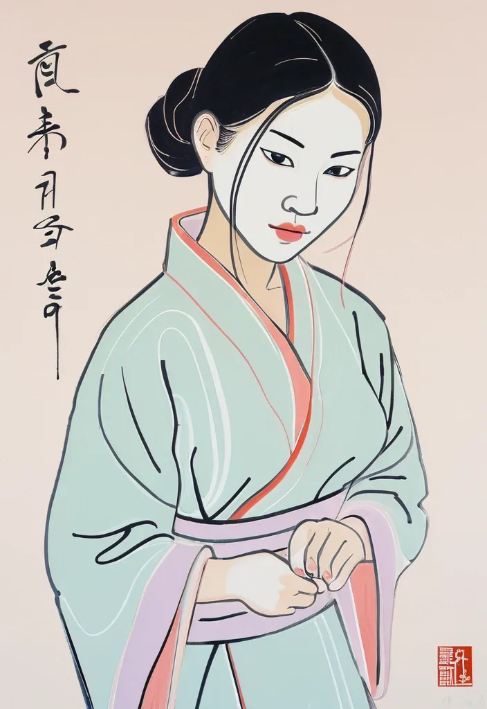 We want an in-depth picture of an anime cartoon girl , specifically designed with a dreamlike , ethereal aesthetic that emphasizes her innocence and connection to nature. The perspective should be a high-angle , looking down at her from above (POV) , giving the viewer a sense of gentle observation , almost like a bird's eye view , but still close enough to discern fine details of her expression and surroundings. The overall mood should be tranquil and slightly melancholic , rendered with soft , diffused lighting. The girl is positioned in shallow , crystal-clear water , barely covering her ankles , suggesting a serene pool or a calm , pristine stream. The water should be so transparent that the smooth , round pebbles and fine sand at the bottom are clearly visible beneath the surface. Small ripples should gently emanate outwards from her feet , indicating her subtle presence , but without disrupting the overall stillness. The water's surface should reflect the soft , ambient light , creating a delicate , shimmering effect. Her left hand is held open , palm facing upwards , directly towards the viewer. Within the very center of her palm , nestled delicately , is a single , small , pristine white flower , perhaps a lily-of-the-valley or a simple wildflower. The flower should appear almost luminescent , a tiny beacon of purity against her skin. A few delicate drops of water are captured in suspended motion , just beginning to fall from her outstretched hand , creating tiny , sparkling arcs of liquid light that enhance the magical realism of the scene. Her clothing is wet and clings softly to her form , subtly revealing the outline of her body beneath without being overtly explicit. The fabric should appear slightly transparent where it's most saturated with water , particularly around her shoulders and chest. The texture of the wet fabric should be finely detailed , showing the gentle folds and adherence to her skin , emphasizing the natural immersion in her environment. The color of her garment should be a soft , muted white or pale cream , enhancing her ethereal quality. Her long , straight black hair is a defining feature , cascading down her back and shoulders , partially submerged in the shallow water around her. The hair should be rendered with a luxurious , almost liquid sheen , reflecting the ambient light and appearing incredibly soft and lustrous. Individual strands should be discernible , especially where it is wet , clinging together in graceful , flowing sections. The contrast of her dark hair against her pale skin and the light water will be visually striking. The girl's face is exceptionally beautiful and innocent , with large , expressive eyes that are looking directly upwards , engaging with the viewer's high-angle perspective. Her gaze should be wide and slightly wistful , conveying a sense of wonder and perhaps a touch of vulnerability. Her lips are full and subtly colored , perhaps a natural rose or pale peach , parted ever so slightly as if in a soft sigh. Her skin is flawless and luminous , shaded with gentle , soft tones that suggest natural light. The art style should be a high-quality , contemporary anime illustration , prioritizing soft lines and exquisite detail over bold outlines. The rendering should be smooth and painterly , akin to digital watercolor or soft cel-shading , with careful attention to gradients and diffused light sources. The character design should evoke classic shōjo aesthetics but with a grounded , realistic sense of proportion and gentle emotion. The composition should feel balanced and serene. Her body should be slightly curved , or her head tilted , to naturally accommodate the overhead perspective. The water , the flower , and her expression should draw the eye towards her face and the delicate gesture of her hand , making them the undeniable focal points of the illustration. The empty space around her in the shallow water should contribute to the feeling of peace and isolation. The background , beyond the immediate water , should repainted anime. ,