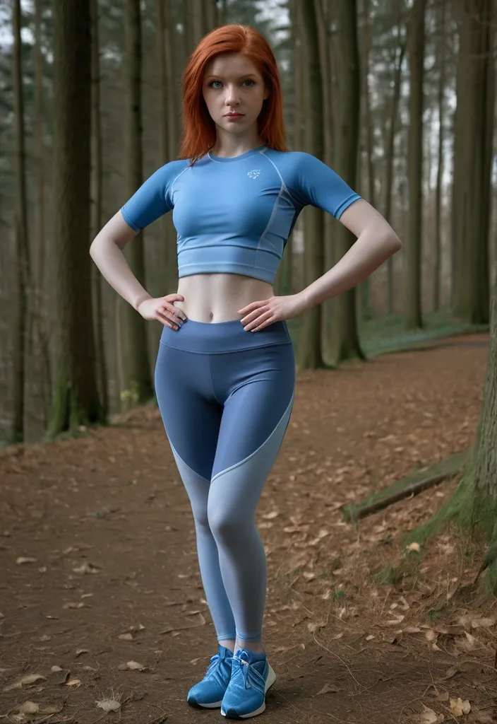 full lenght , a beautiful european pale female with wavy shoulder auburn hair in her mid thirty , wearing blue opened wide zipper openside shorty suit , is standing on the bridge of a boat , scuuba equipment is posed next to her , she's lookin at a futuristic sea platform in the background , suny day , cinematic style ,