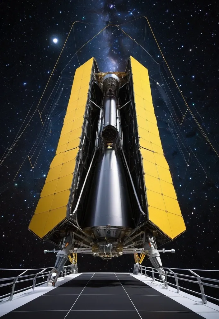 An astronaut floating in a vast , nebulae-filled void , tethered to a colossal , ancient library that drifts through space. Bookshelves stretch into infinity , filled with glowing tomes. Ethereal light emanates from celestial bodies , casting long shadows. The style is a blend of surrealism and abstract art , with an ethereal , cosmic atmosphere reminiscent of artists like Remedios Varo and Yves Tanguy , emphasizing a sense of wonder and cosmic discovery. ,
