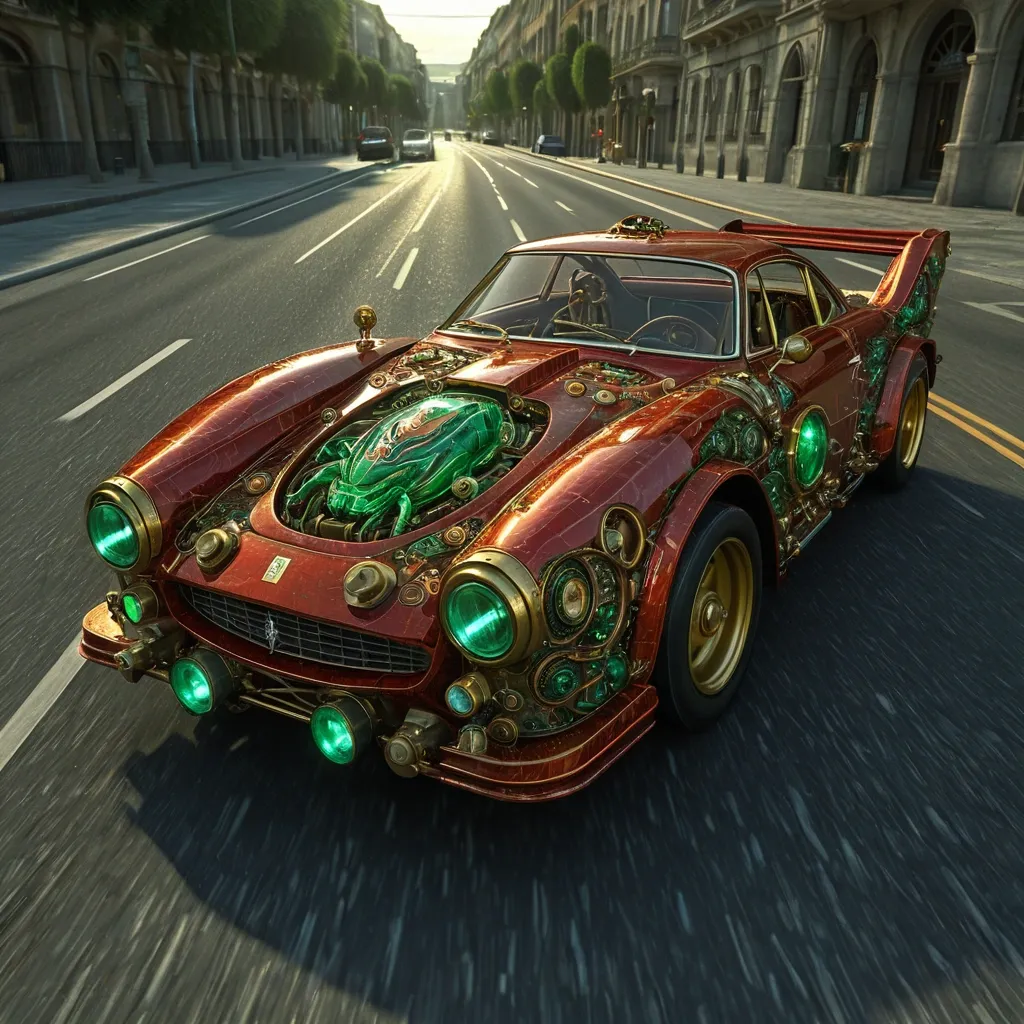 full body , ridiculous , cinema lights , (best medium photo of mechanical Ferrari) , (Crab motif) , green eyes , in middle of road , motion speed , steampunk , intricate design , HDR (high dynamic range) , ray tracing , Anisotropic Filtering , Depth of Field , Maximum Sharpness and Acutance , Multi-layer Textures , Albedo and Highlight Maps , Surface Shading , Accurate Simulation of Light-Material Interactions , Perfect Proportions , Octane Rendering , ,