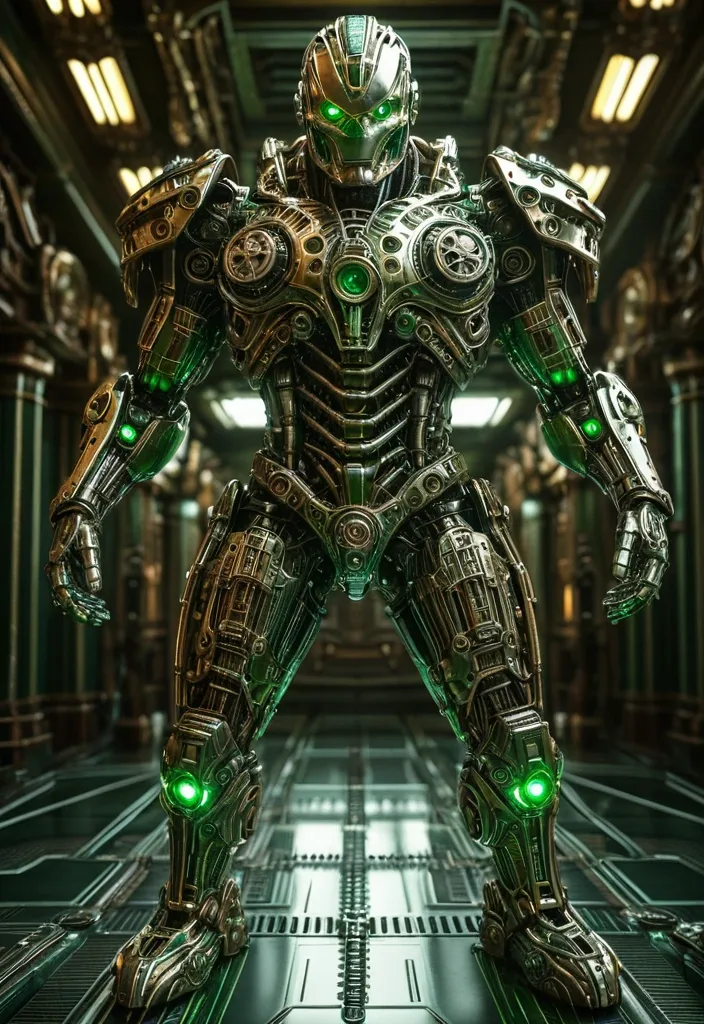 full body , ridiculous , cinema lights , (best medium photo of mechanical man) , (Predator motif) , green eyes , steampunk , intricate design , HDR (high dynamic range) , ray tracing , Anisotropic Filtering , Depth of Field , Maximum Sharpness and Acutance , Multi-layer Textures , Albedo and Highlight Maps , Surface Shading , Accurate Simulation of Light-Material Interactions , Perfect Proportions , Octane Rendering , ,