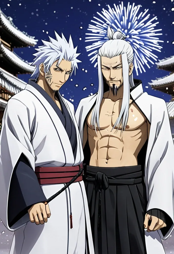 Gin Ichimaru and kenpachi zaraki happy new years ,