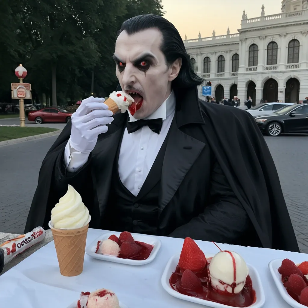 dracula eating ice cream near trump and petrole ,