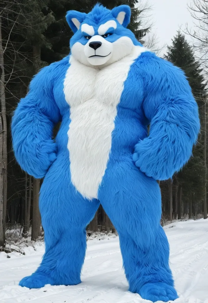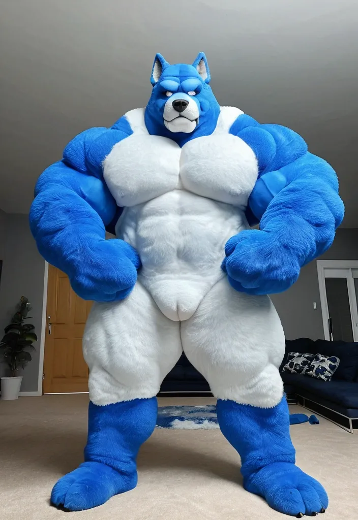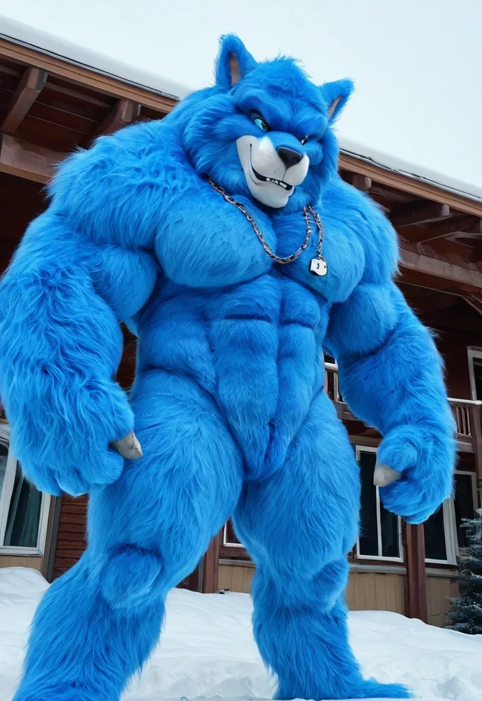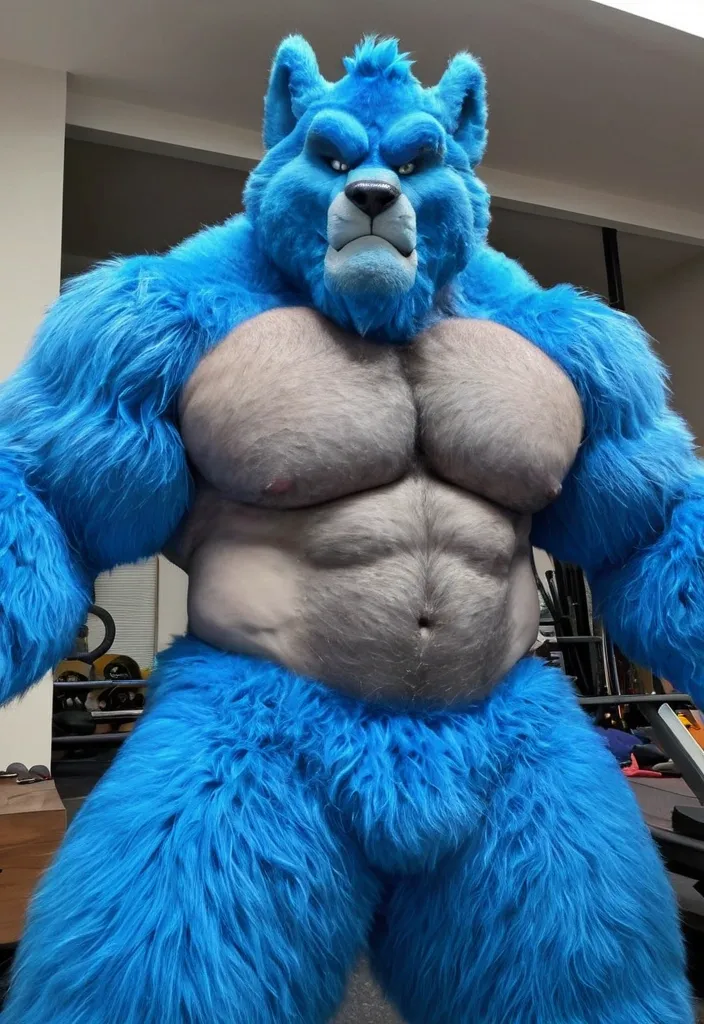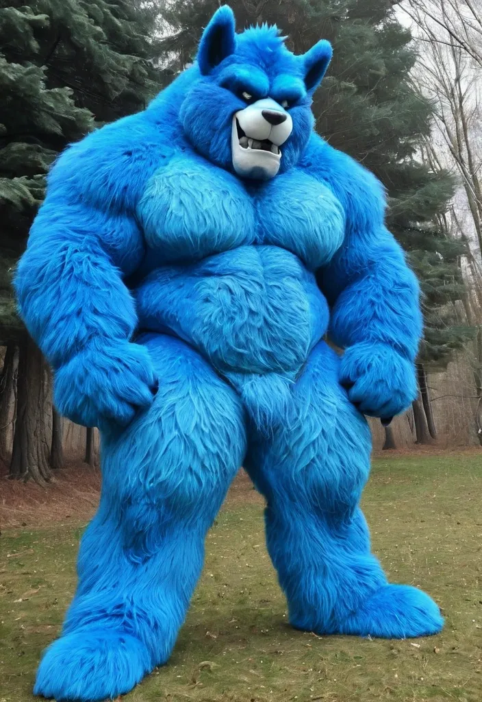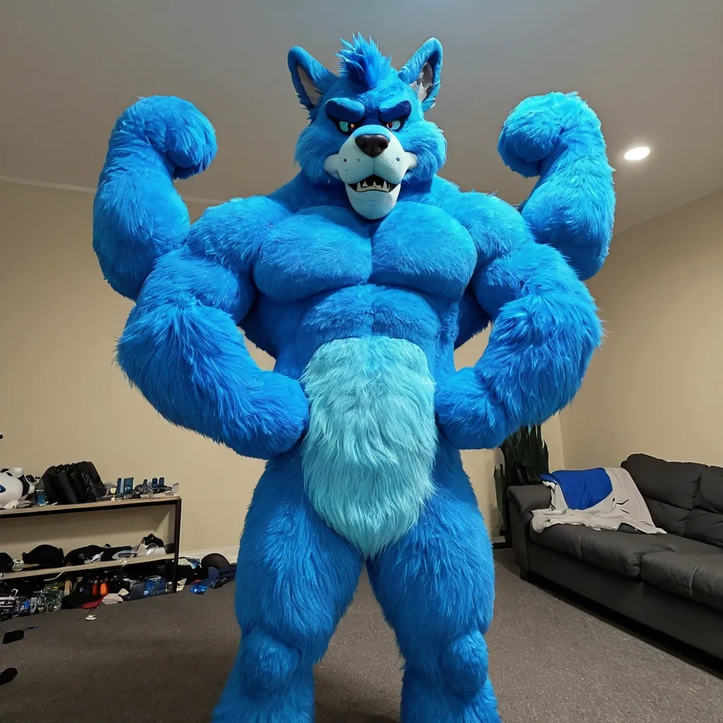Biggest muscular blue furry furrsuit ,